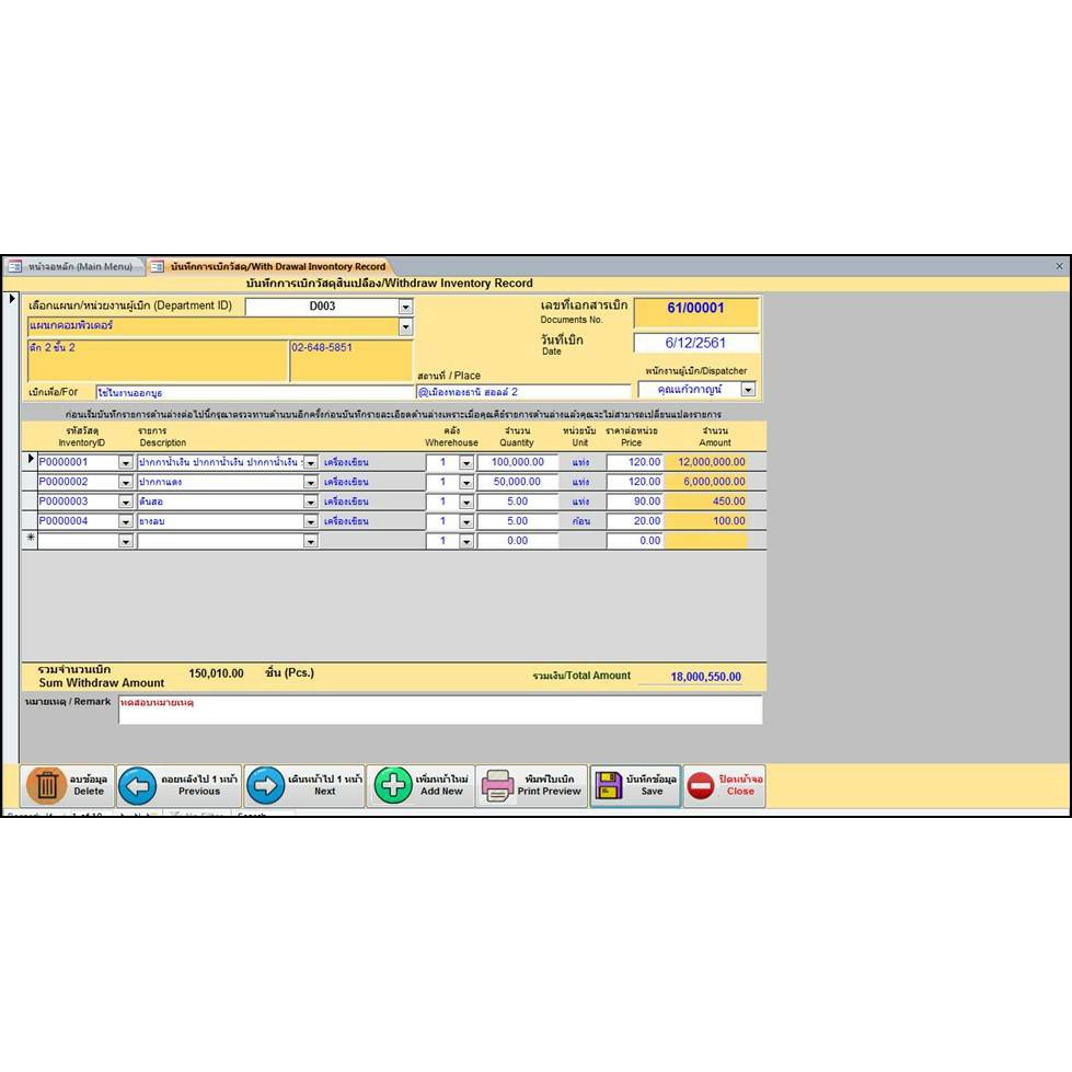 โปรแกรมคุมสต๊อกสินค้าหรือวัสดุซื้อมาเบิกเพื่อใช้ในธุรกิจ (โปรแกรมควบคุมวัสดุสิ้นเปลืองอัตโนมัติ)