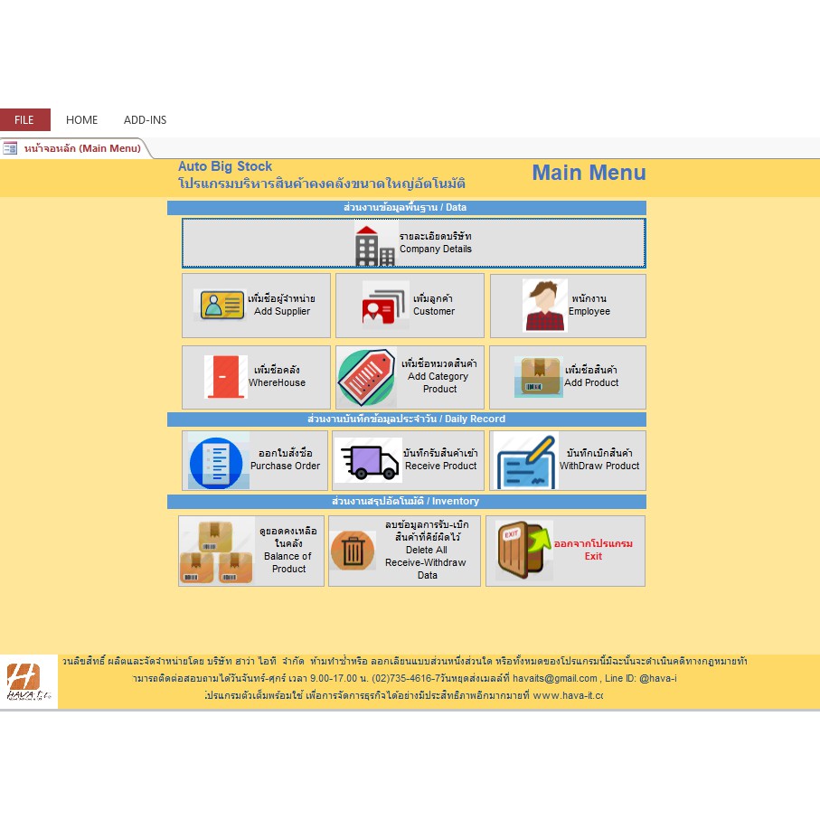 โปรแกรมคุมสต๊อกอย่างเดียว ใช้ควบคุมสต๊อกสินค้าได้หลายคลังสินค้า และพิมพ์ใบรับใบเบิก (Auto Big Stock)