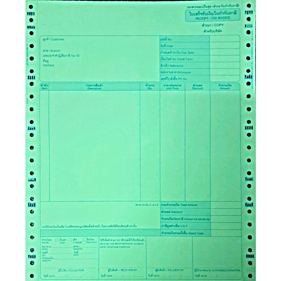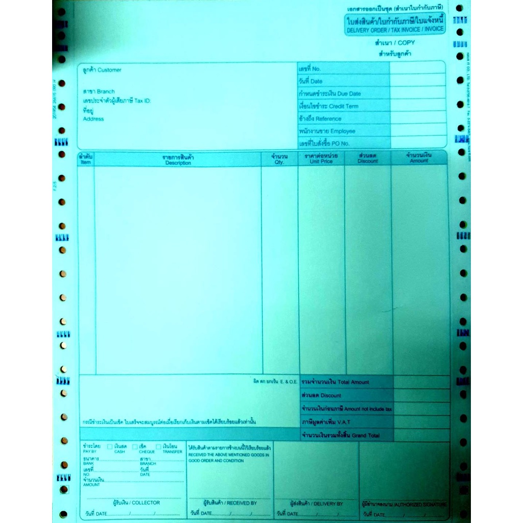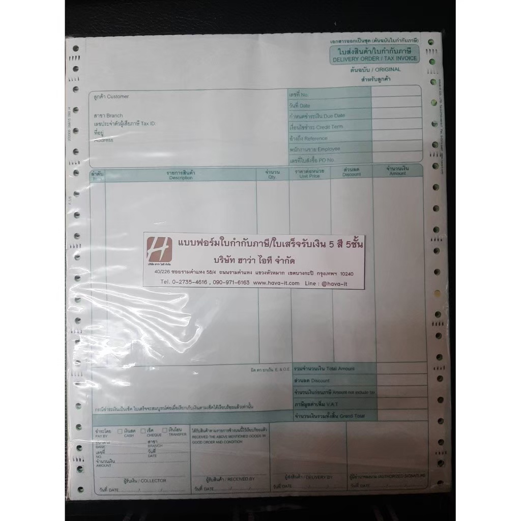 ฟอร์มใบเสร็จรับเงิน/ใบส่งสินค้า/ใบกำกับภาษี สำเร็จรูป 5 ชั้น 5 สี จำนวน 500 ชุด (กล่อง)