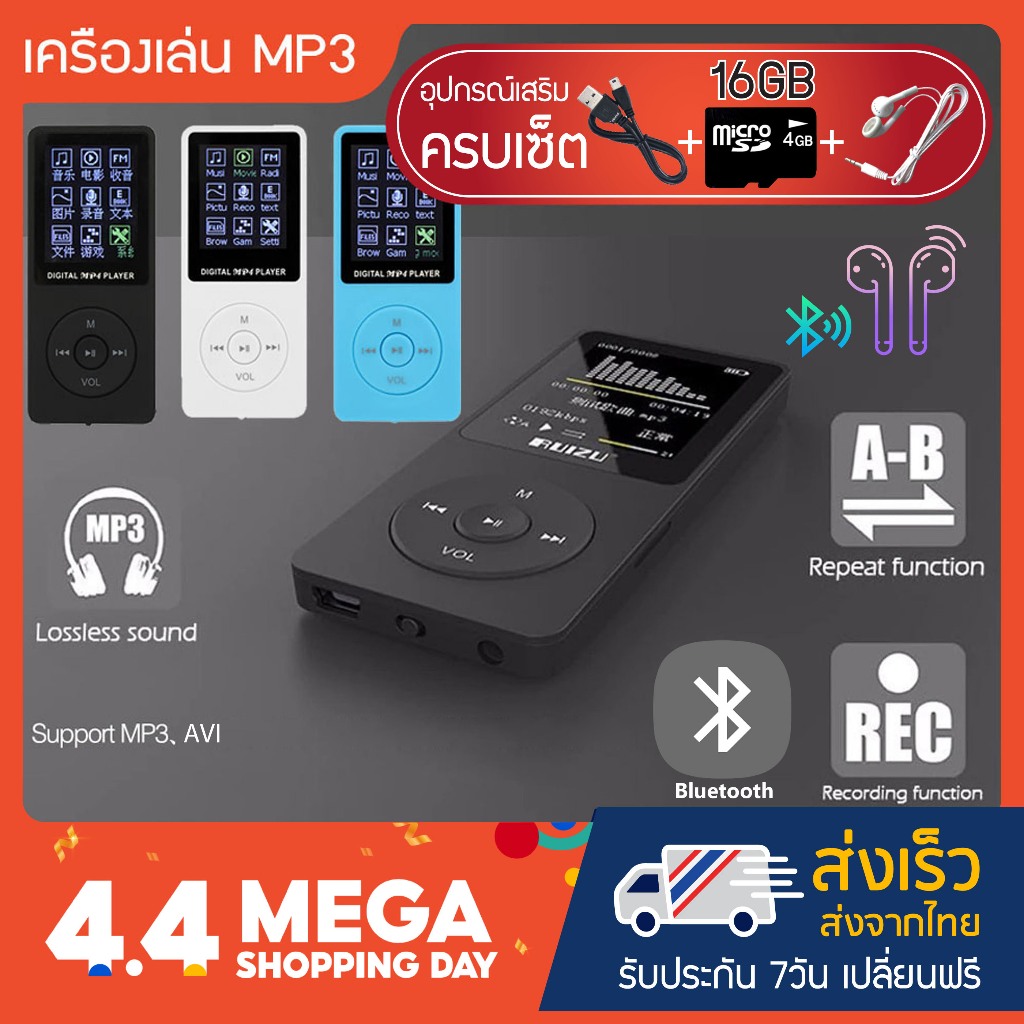 เครื่องเล่น MP3 MP4 player Bluetooth รุ่น Ultra-thin plus มีบลูทูธ เมมจุใจ16GB+หูฟัง+สายชาร์จโหลดเพลง ครบเซ็ต
