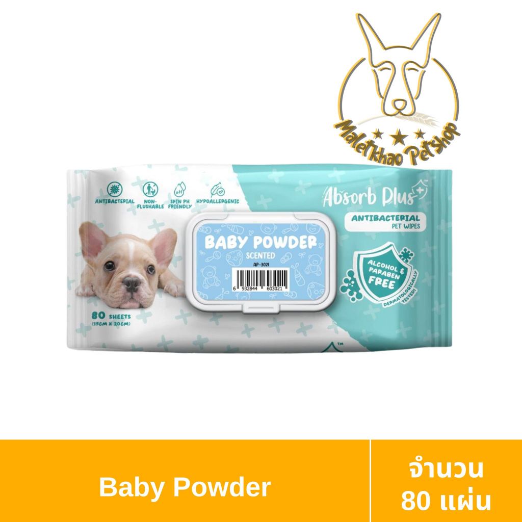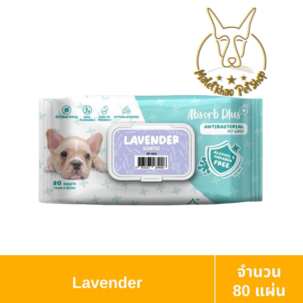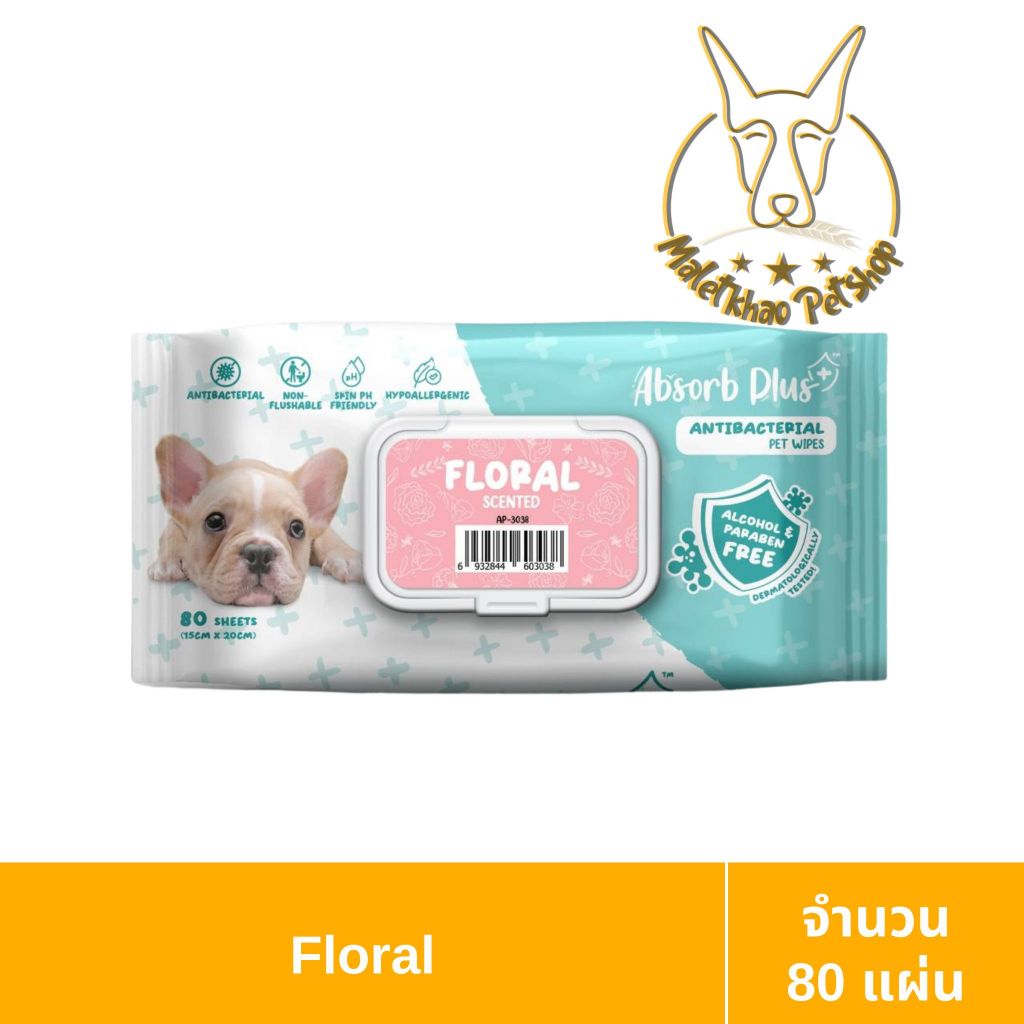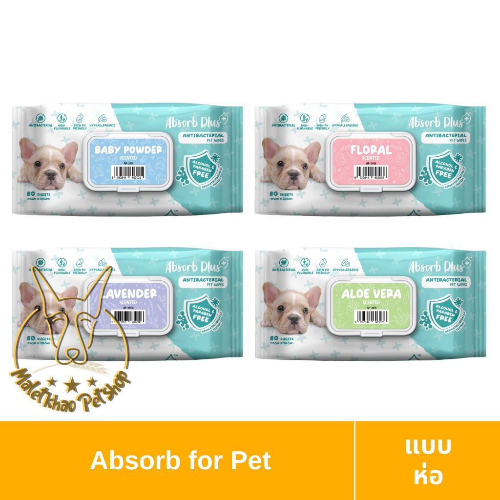 [MALETKHAO] Absorb (แอปซอร์บ) Plus Pet Wipes Antiracterial ผ้าเปียก ทิชชู่เปียกสำหรับสัตว์เลี้ยง ปริมาณ 80แผ่น