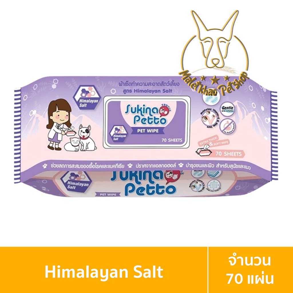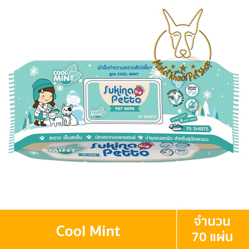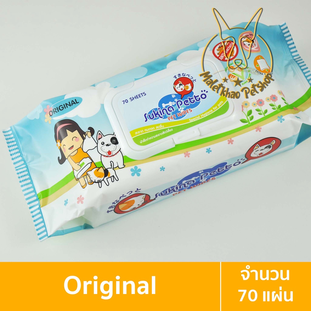 [MALETKHAO] Sukina Petto (ซูกินะ เพ็ดโตะ) ห่อใหญ่ (70 แผ่น) ผ้าเปียกทำความสะอาดสำหรับสุนัขและแมว