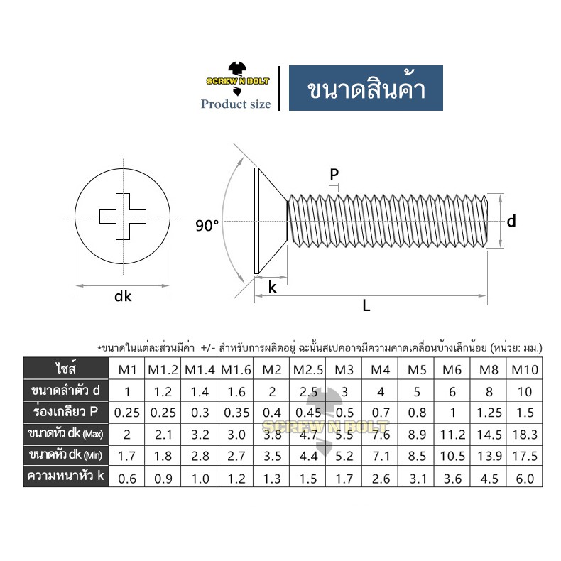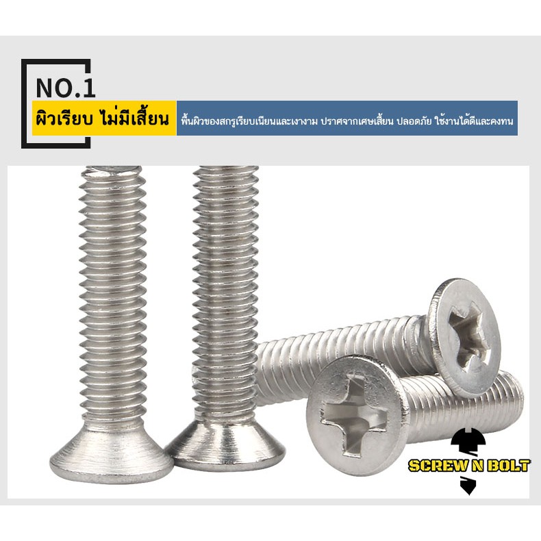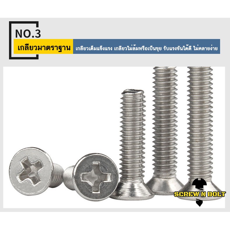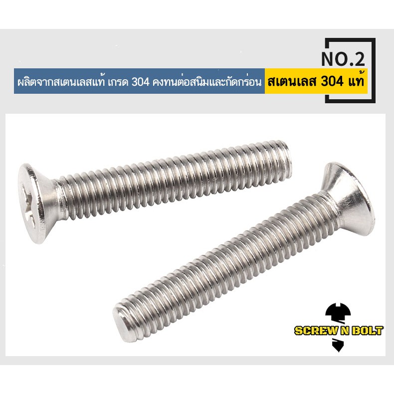 น็อต สกรู หัวเตเปอร์ แฉก F+ สแตนเลส 304 เกลียวมิล หยาบ M4/Flat Head Phillip Machine Screw SUS304 M4
