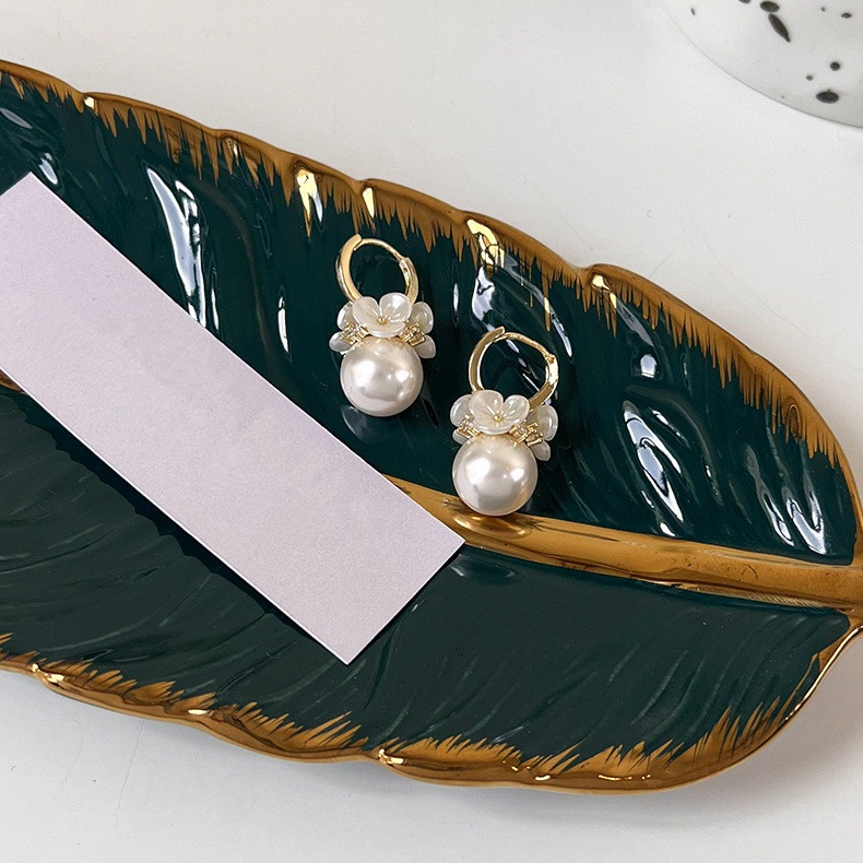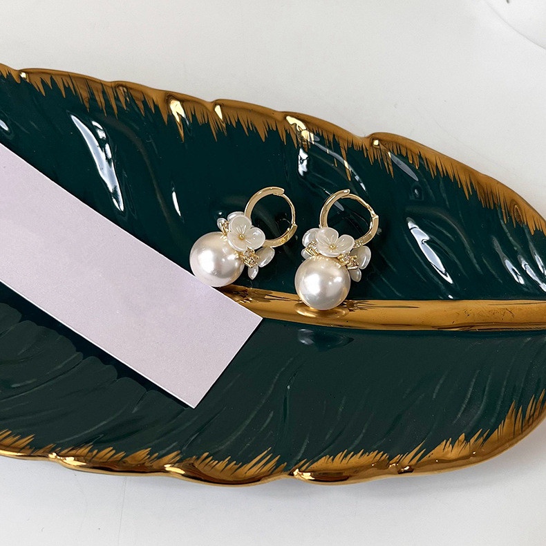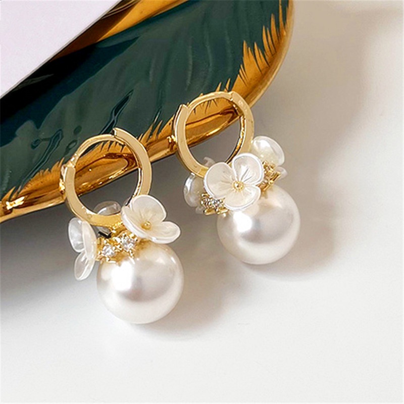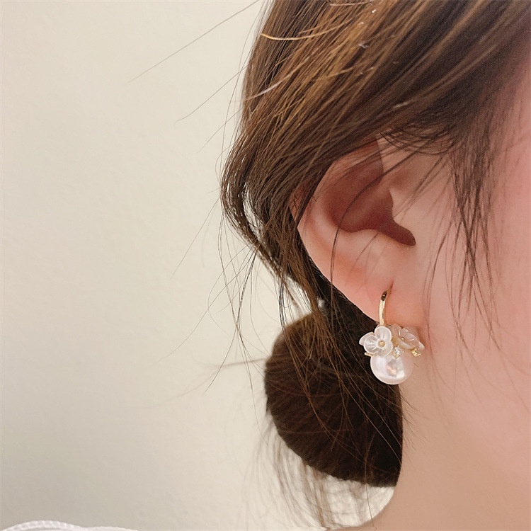 Etrendy ต่างหู รูปเปลือกหอย ดอกไม้ ประดับมุก สไตล์เกาหลี แฟชั่นสําหรับผู้หญิง 2022