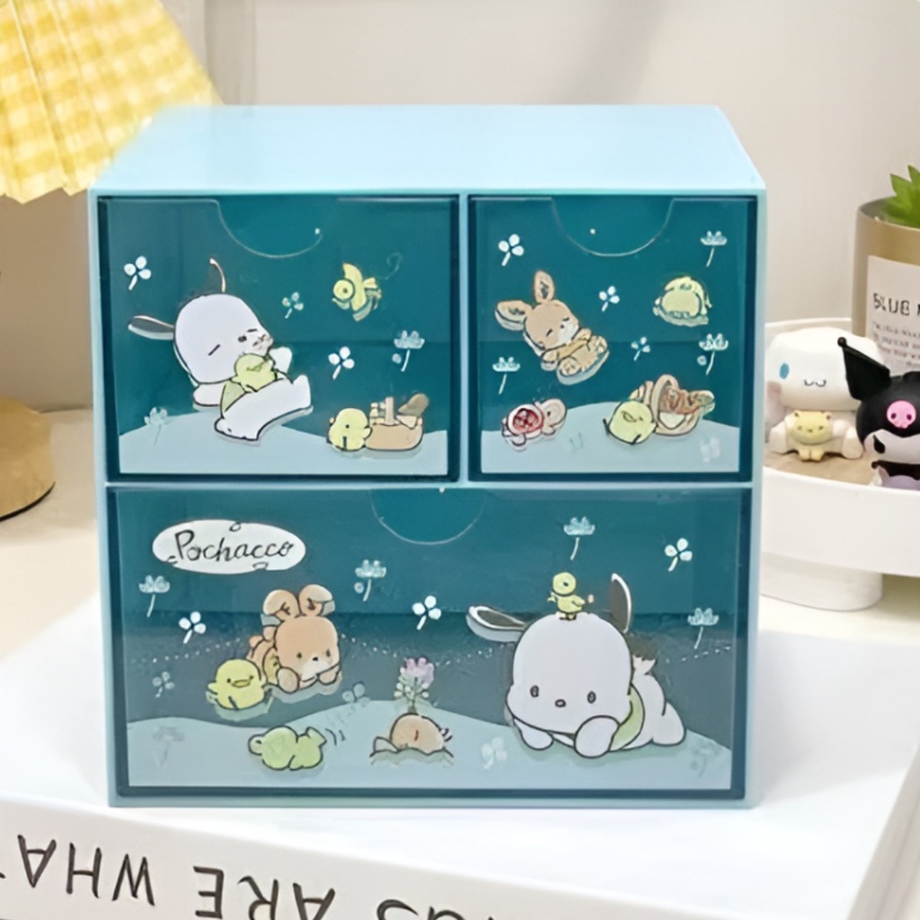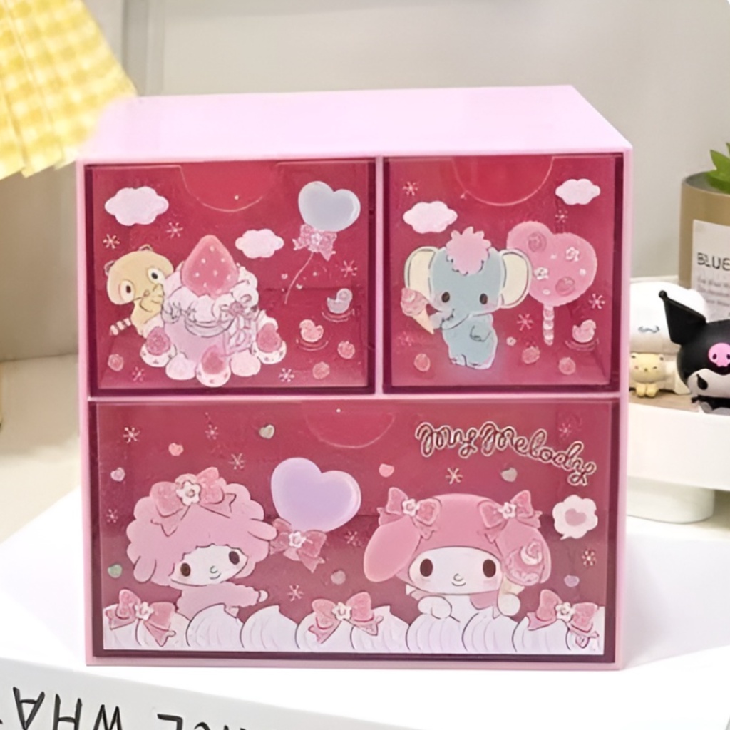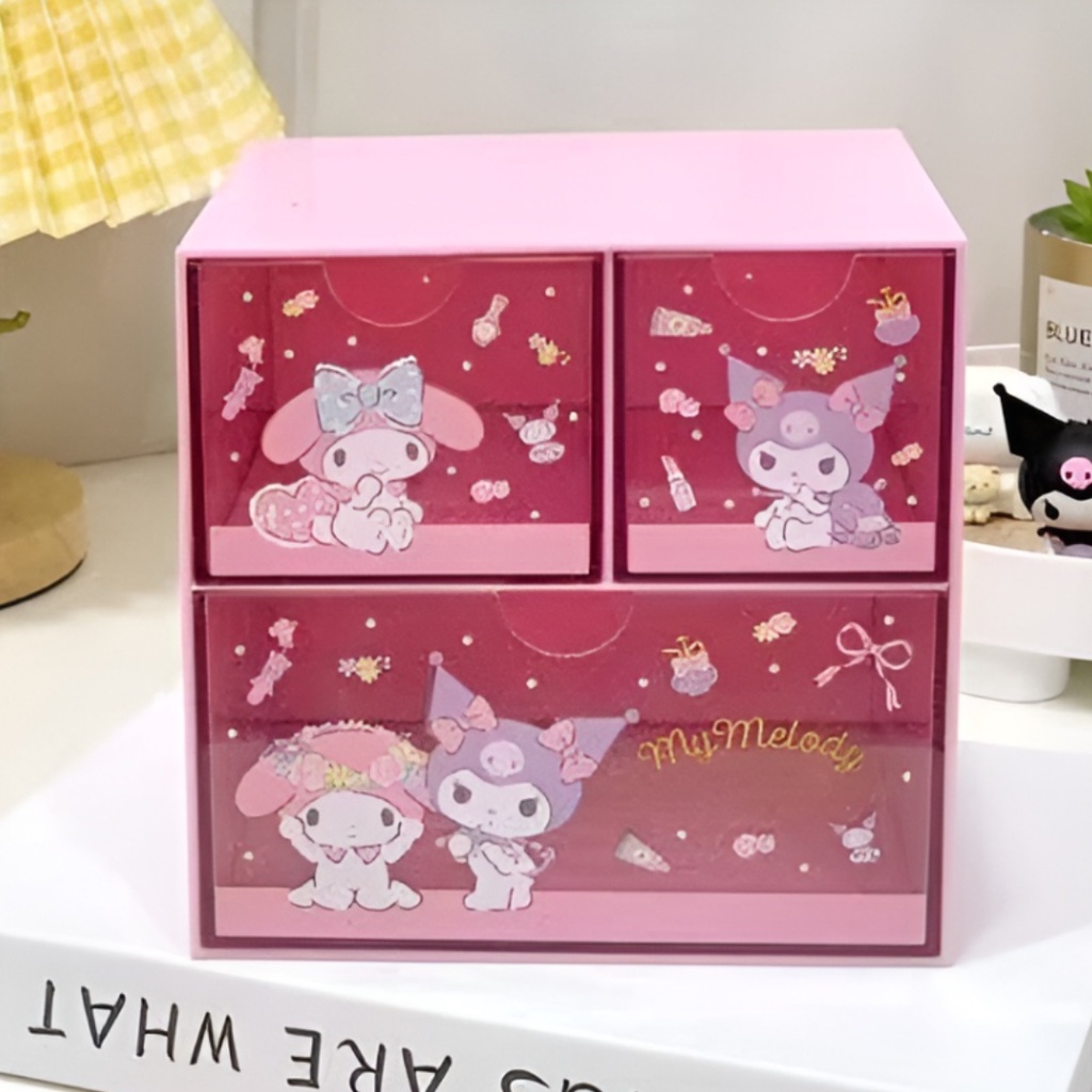 🗄️ กล่องลิ้นชัก อเนกประสงค์ Sanrio Character มาใหม่ ลายน่ารัก งานชนช็อป ขนาด 15×15×11.8 cm รายละเอียดตามภาพ