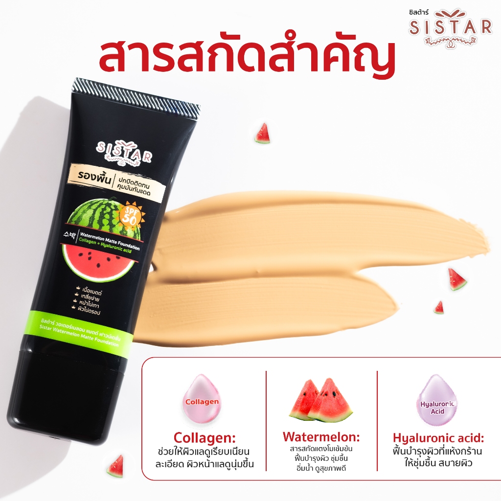 Sistar Official ซิสต้าร์ วอเตอร์เมลอน แมตต์ ฟาวน์เดชั่น รองพื้นแ ตงโม เนื้อแมตต์ 40 กรัม (SST1003)