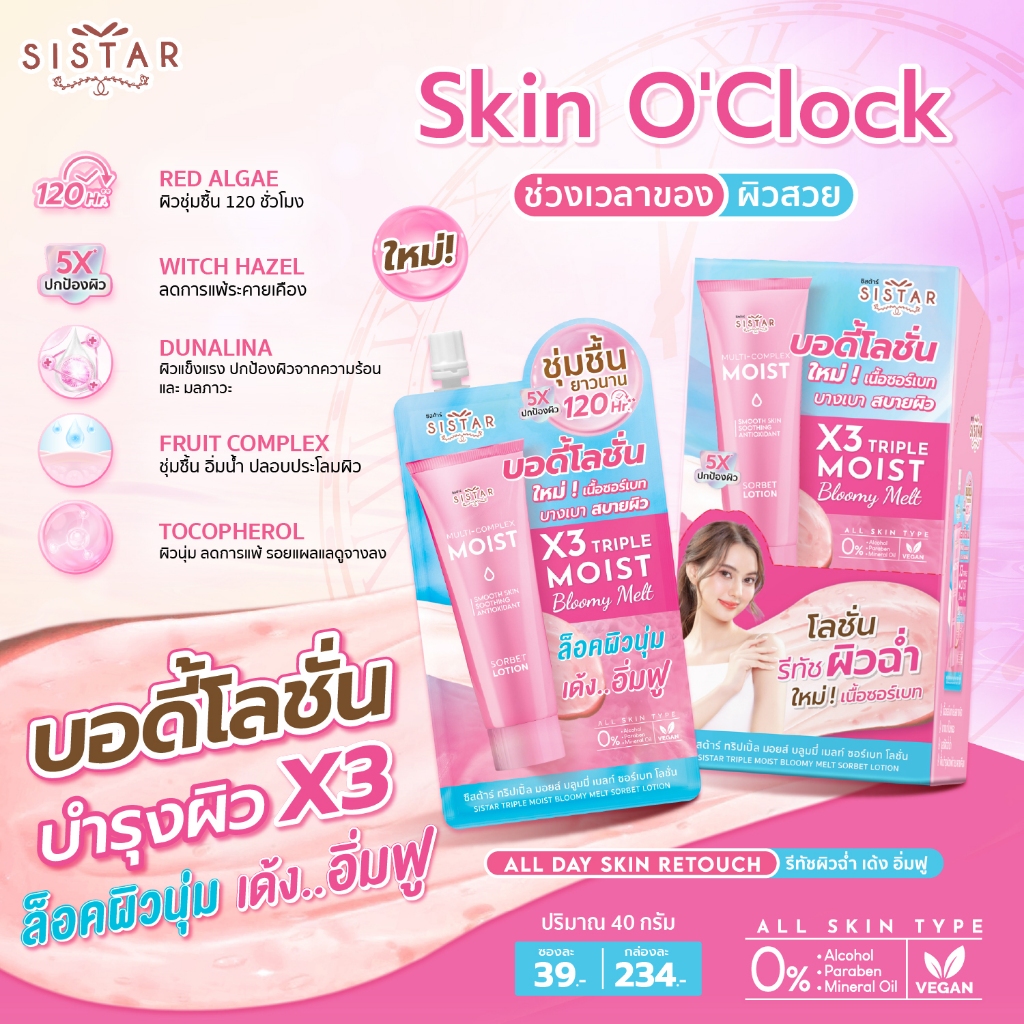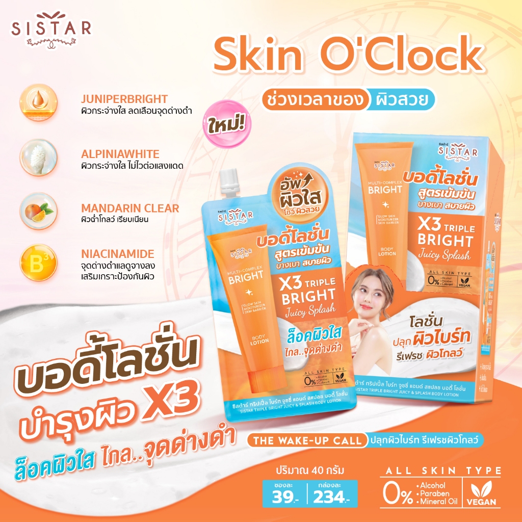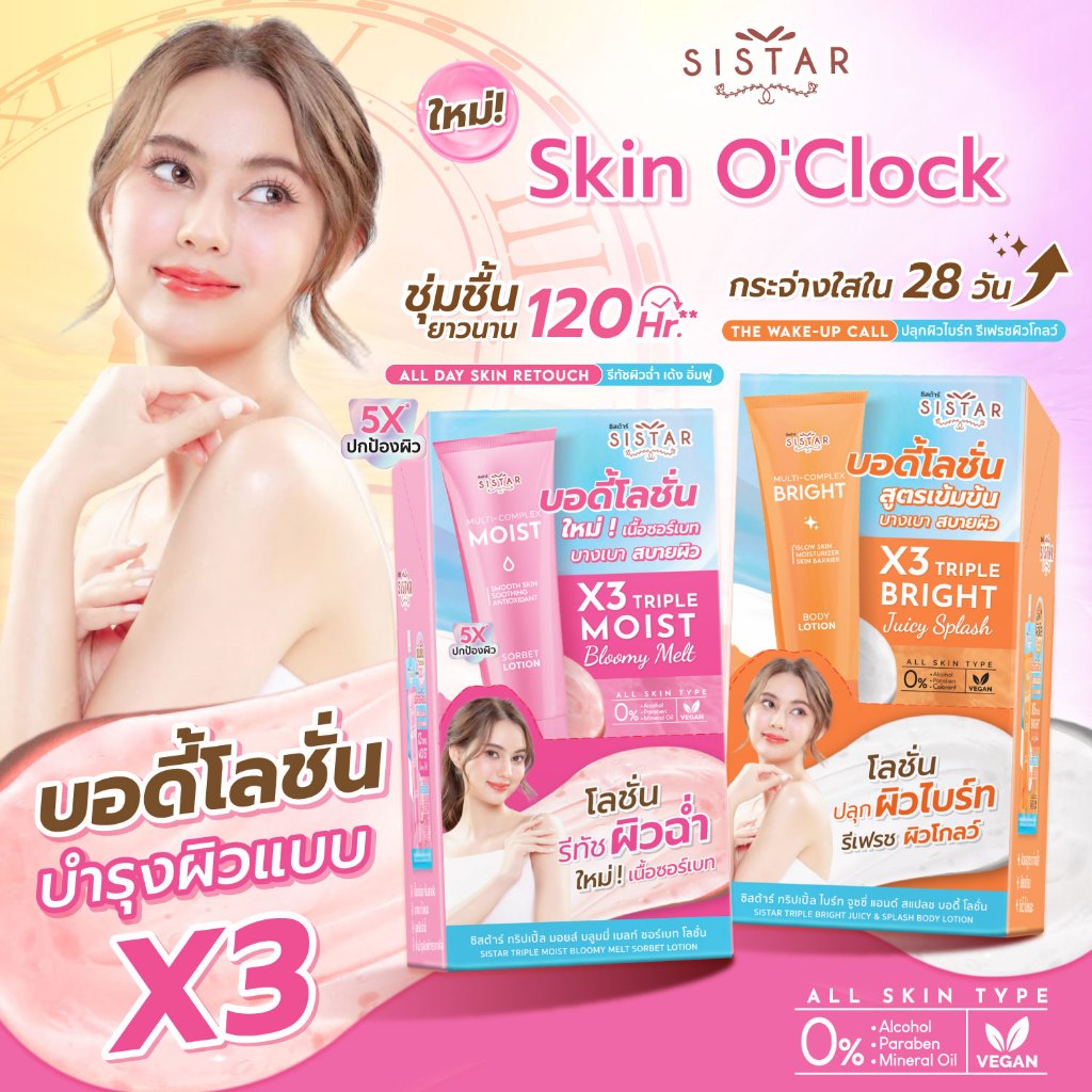 Sistar Official ใหม่ !! ซิสต้าร์ Skin O'Clock บอดี้โลชั่น บำรุงผิวกาย ปลุกผิวไบร์ท รีทัชผิวฉ่ำ กล่อง 6 ซอง