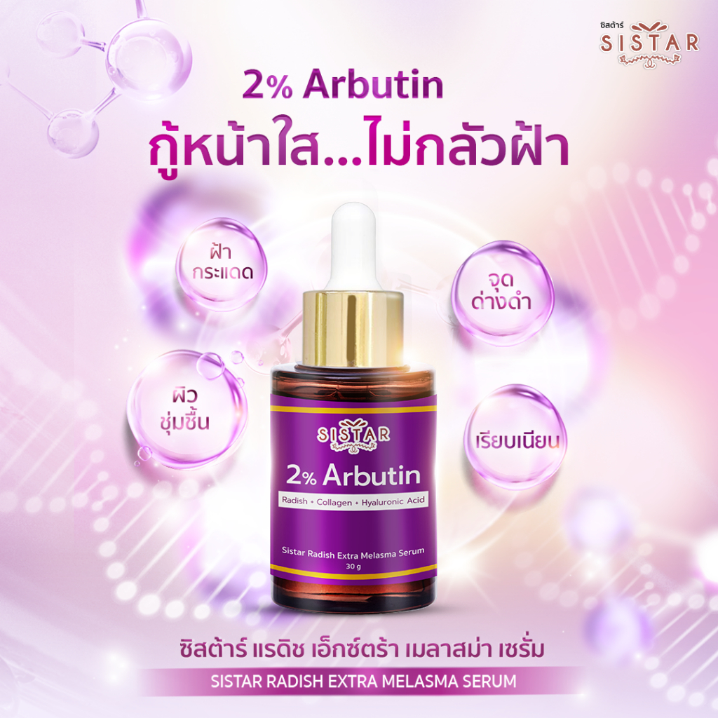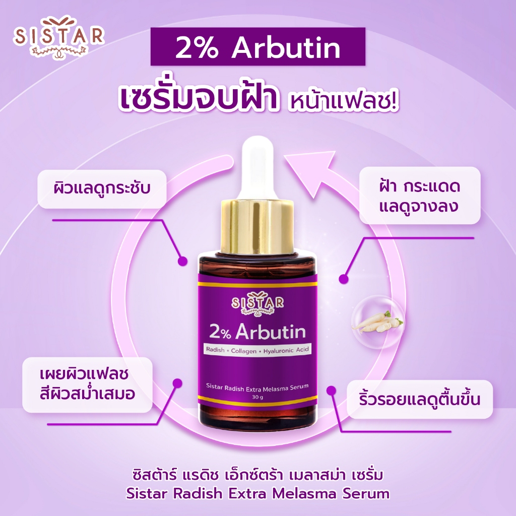 Sistar Official ซิสต้าร์ แรดิช เอ็กซ์ตร้า เมลาสม่า เซรั่ม 2% อาร์บู ติน เซรั่มจบฝ้า หน้าแฟลช ขวด 30 กรัม