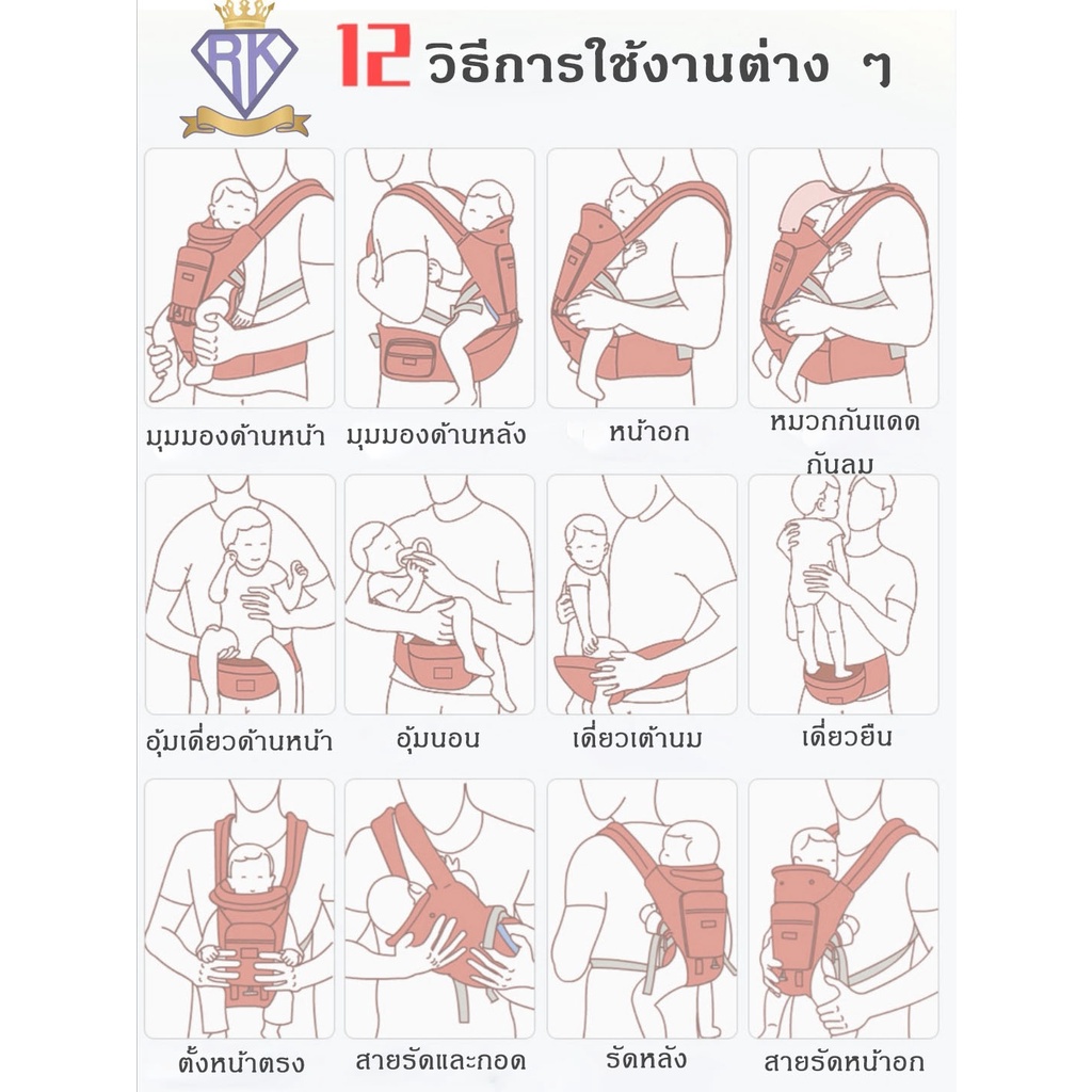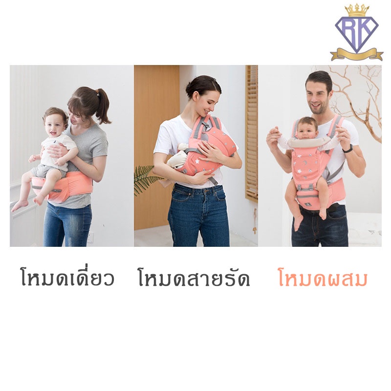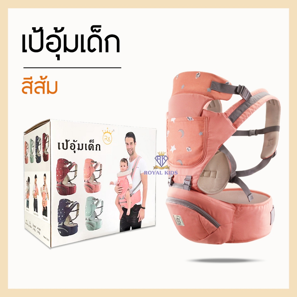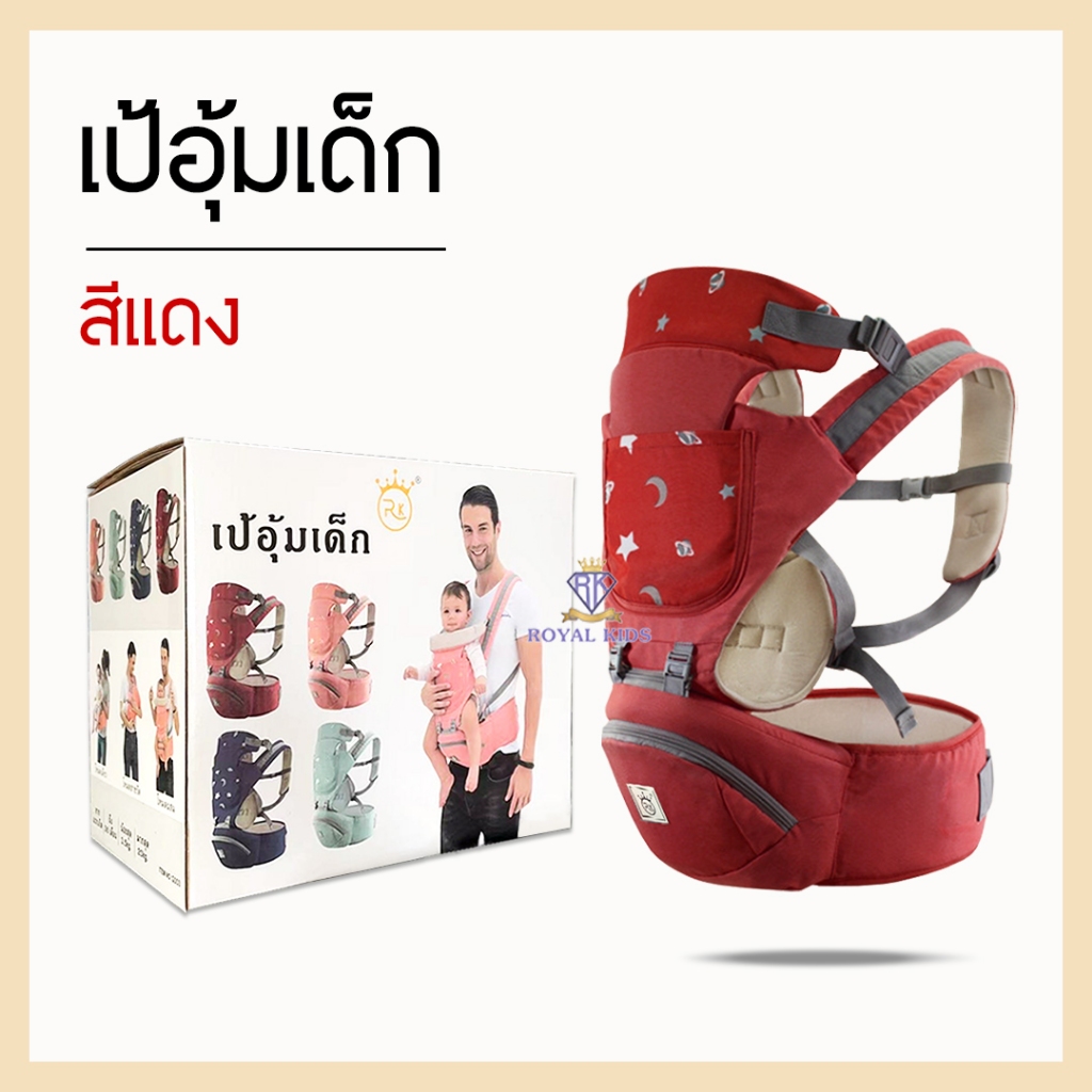 Royal kids เป้อุ้มเด็กแบบมีซัพพอร์ต Aiebao ของแท้ พร้อมกล่อง เป้อุ้มมีที่นั่ง รับได้ถึง 30kg.สำหรับเด็ก 0-48 เดือน