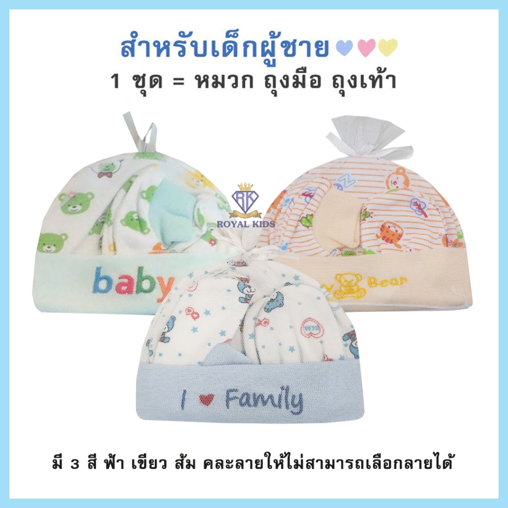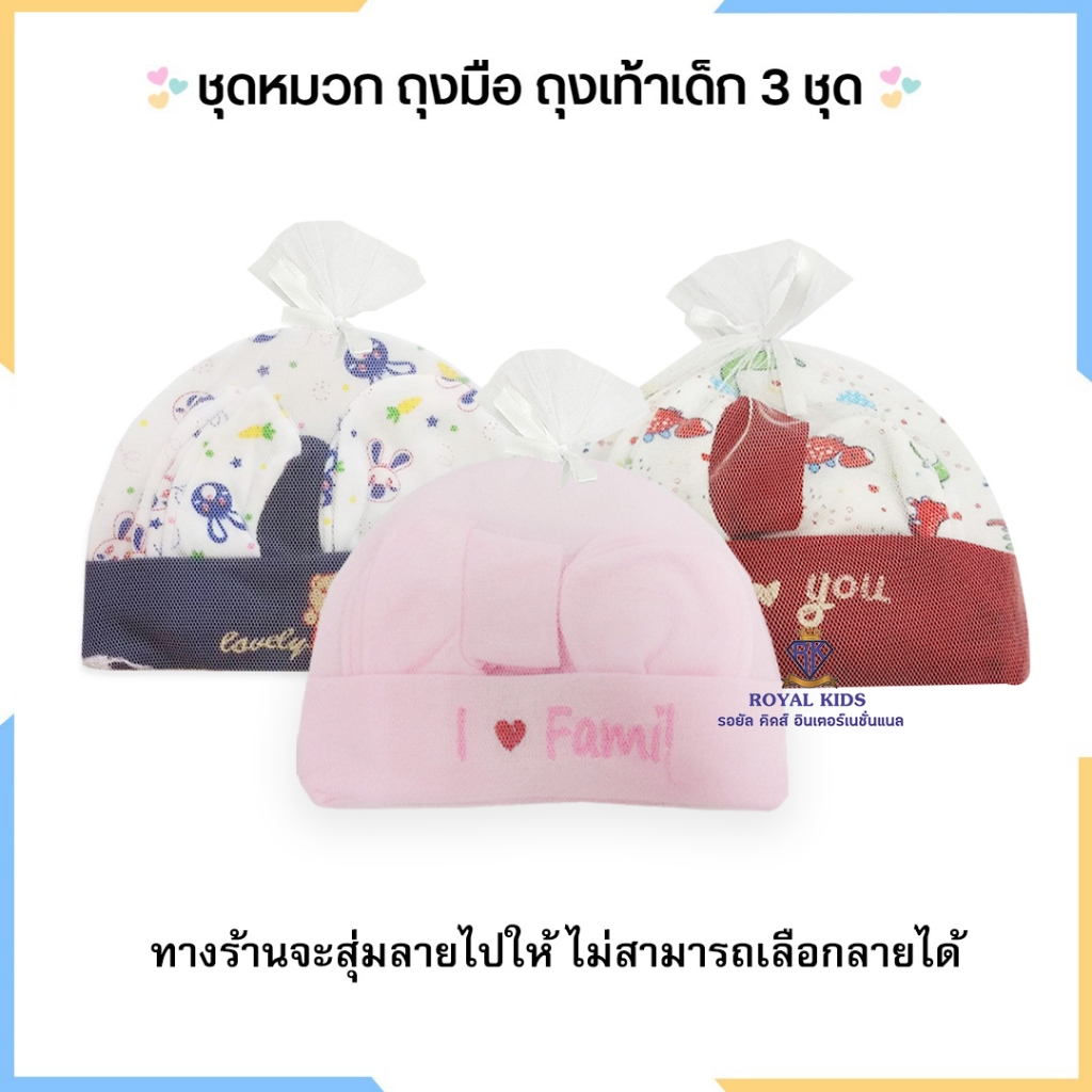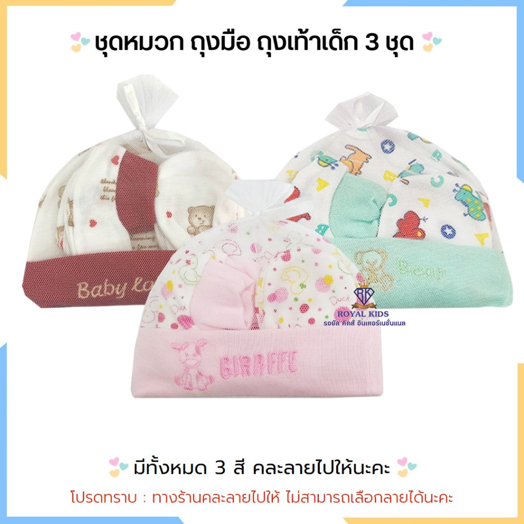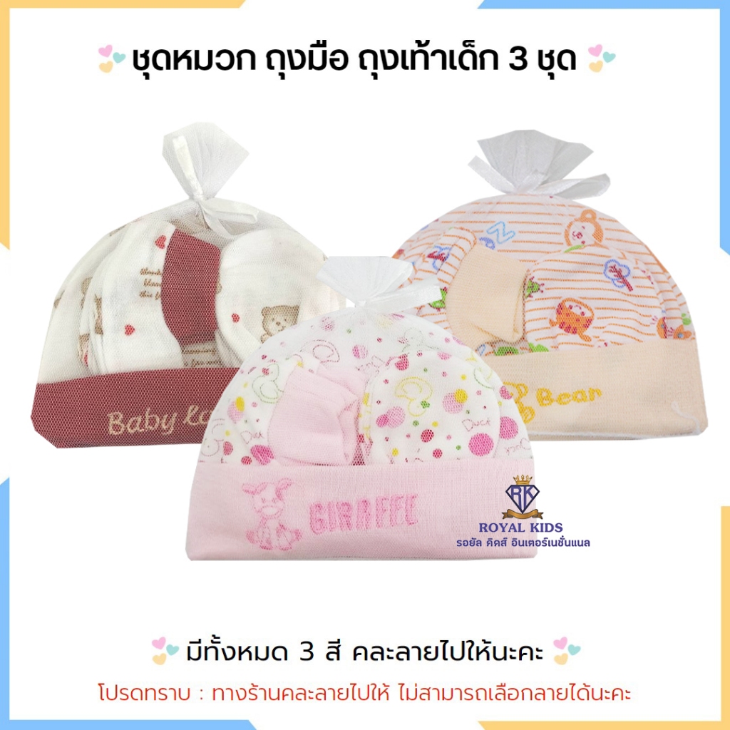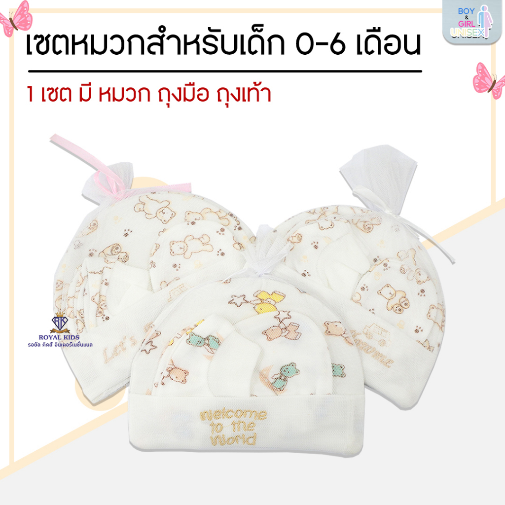 Royal kids เซ็ทหมวก ถุงมือ ถุงเท้า เซตเตรียมคลอด 1 ชุดได้ 3 อย่าง เนื้อผ้านิ่ม สำหรับเด็กอ่อน