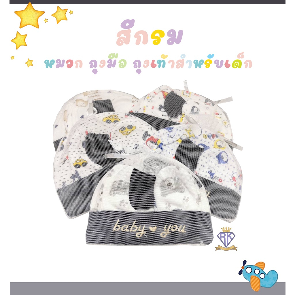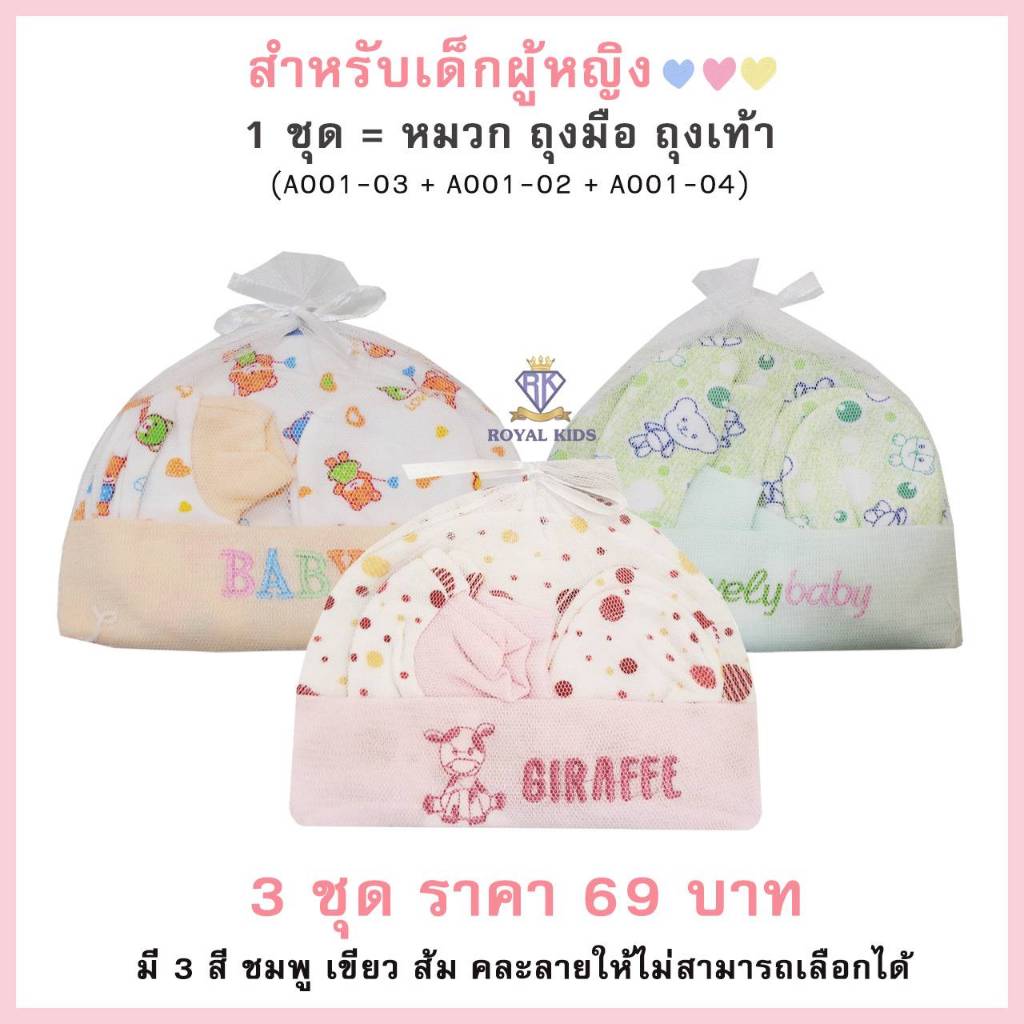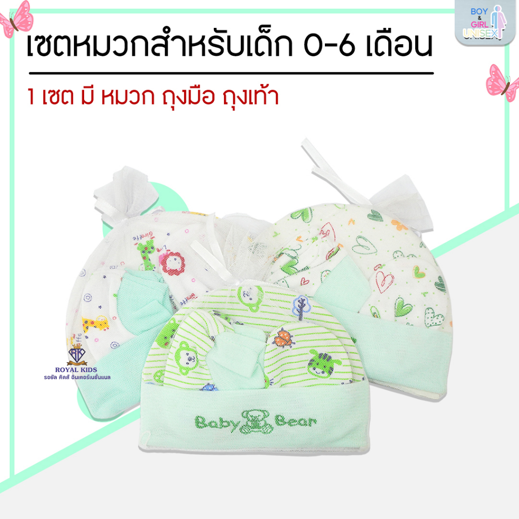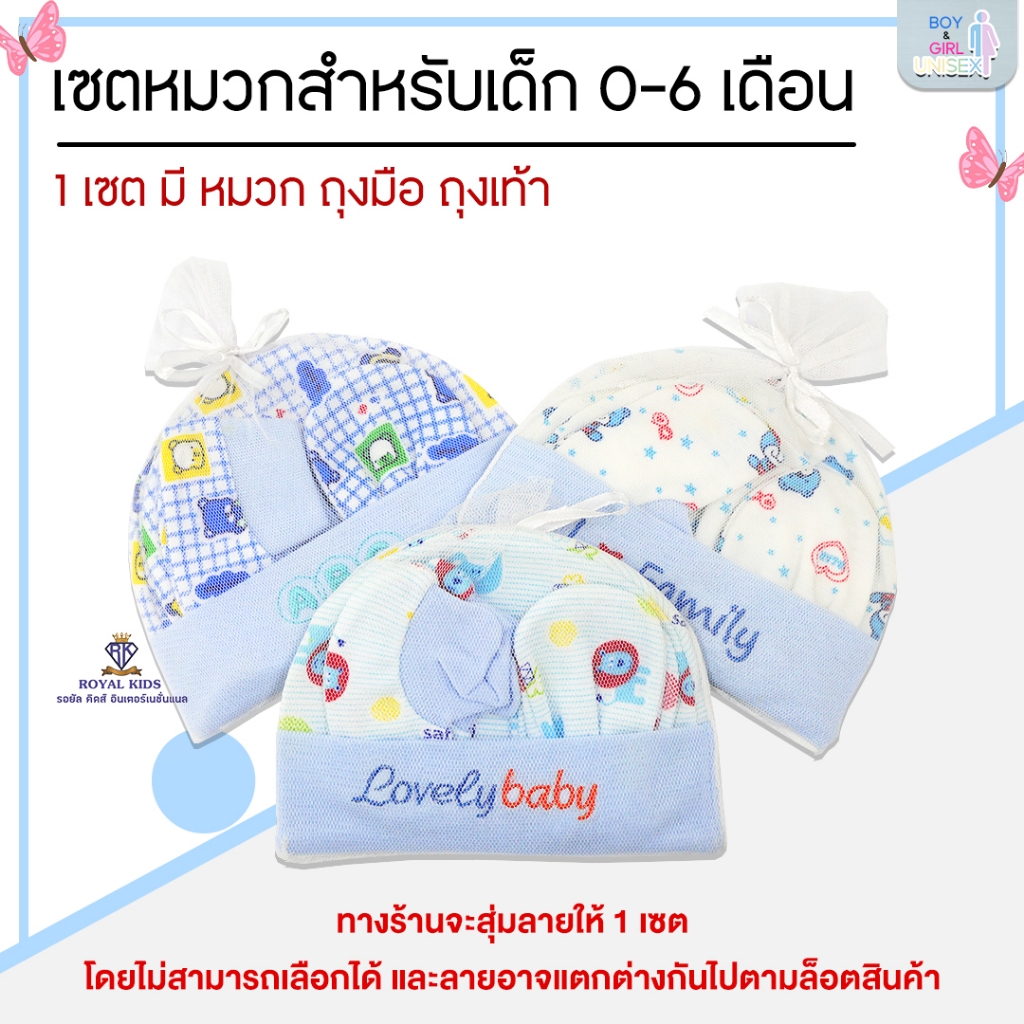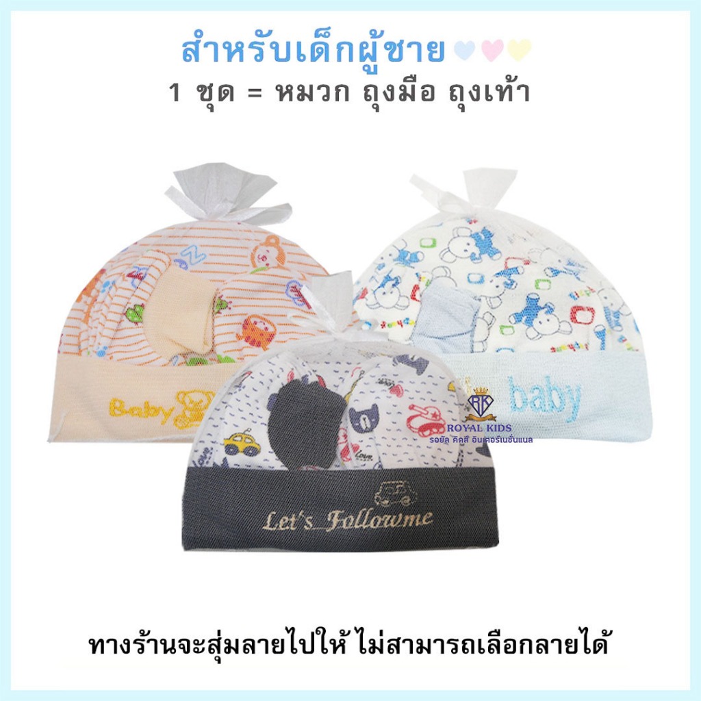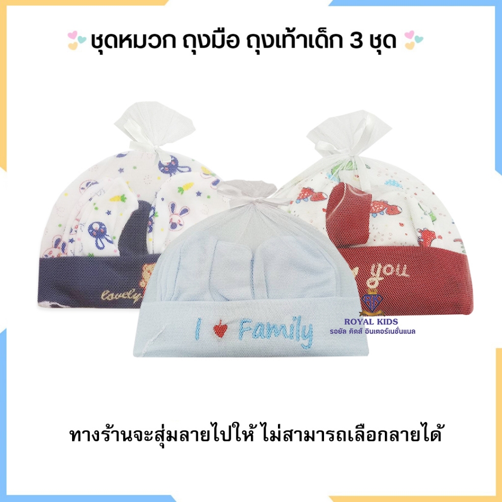 Royal kids เซ็ทหมวก ถุงมือ ถุงเท้า เซตเตรียมคลอด 1 ชุดได้ 3 อย่าง เนื้อผ้านิ่ม สำหรับเด็กอ่อน