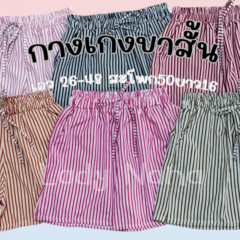 กางเกงขาสั้น ลายริ้ว เอว26-48 สาวอวบใส่ได้ ใส่สบาย ใส่เที่ยวทะเล