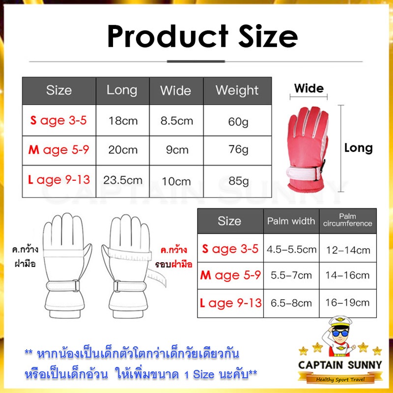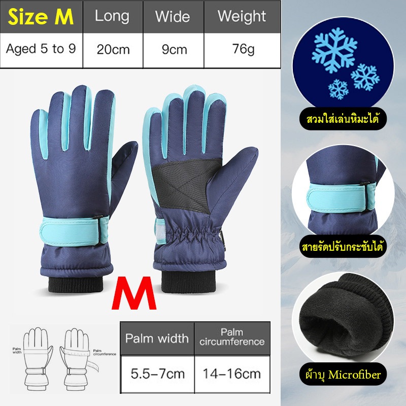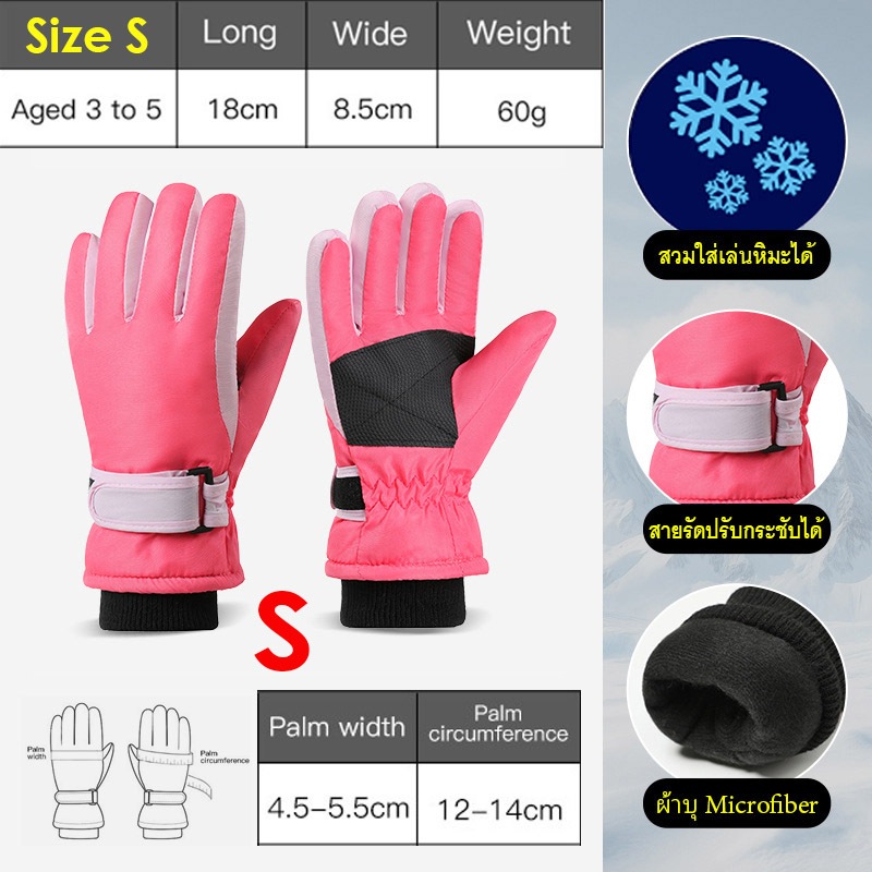 ถุงมือกันหนาวเด็ก 3-13 ปี กันน้ำเล่นหิมะได้ SKI39