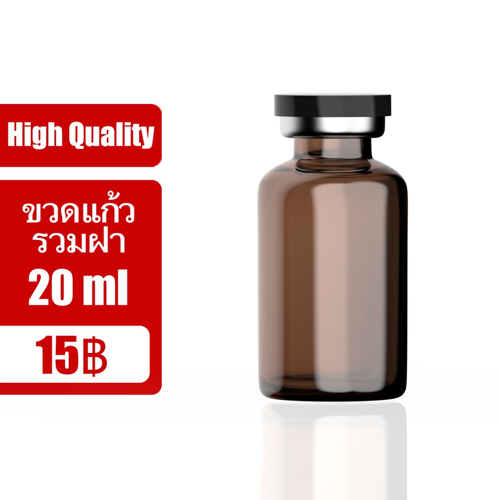 ขวดแก้วสีน้ำตาล(ขวดไวอัล ขวดยาฉีด) แถมจุกยางและฝาฟรอยด์อะลูมิเนียม 20ml (5 ขวด/แพ็ค) V1BB1B