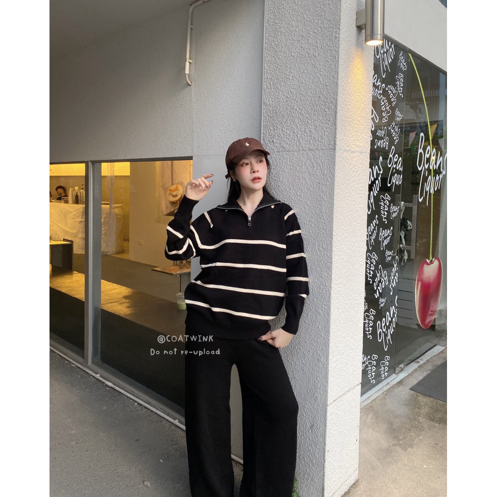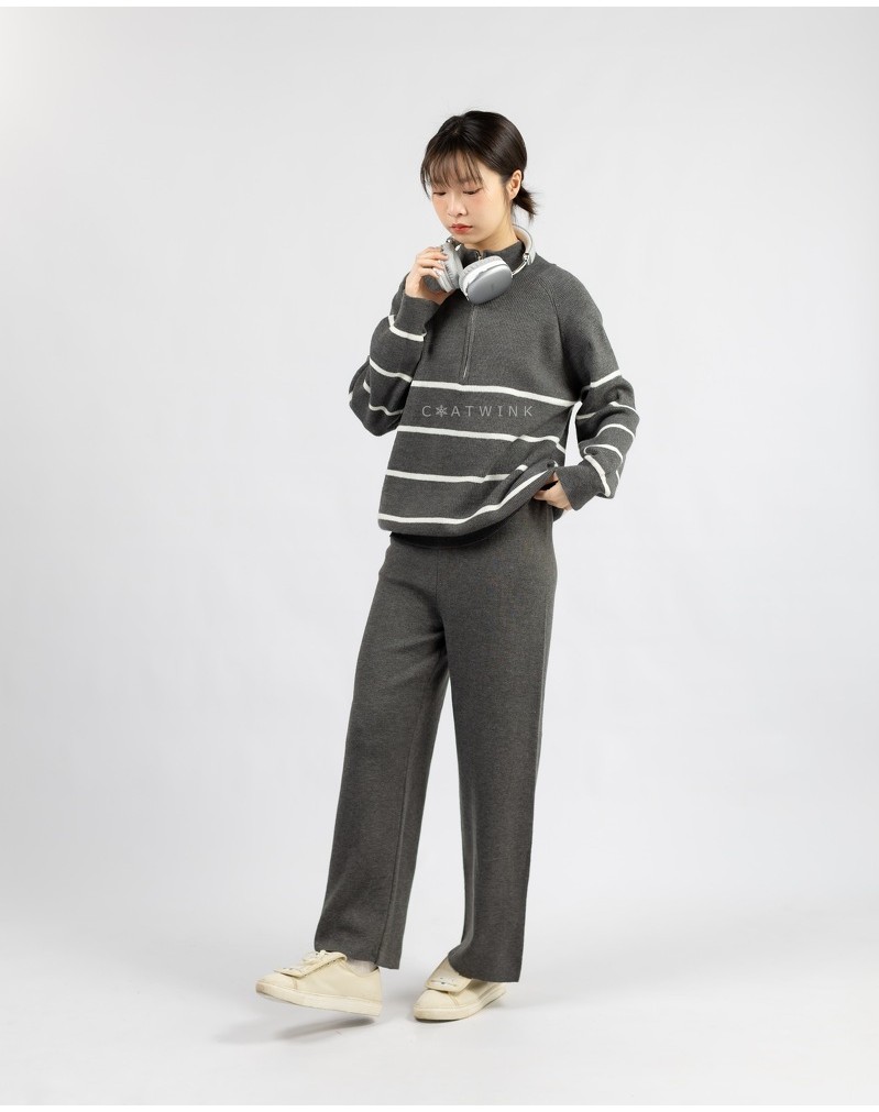 COATWINK~ชุดเซ๊ต ไหมพรม เสื้อลายขวาง+กางเกงขายาว
