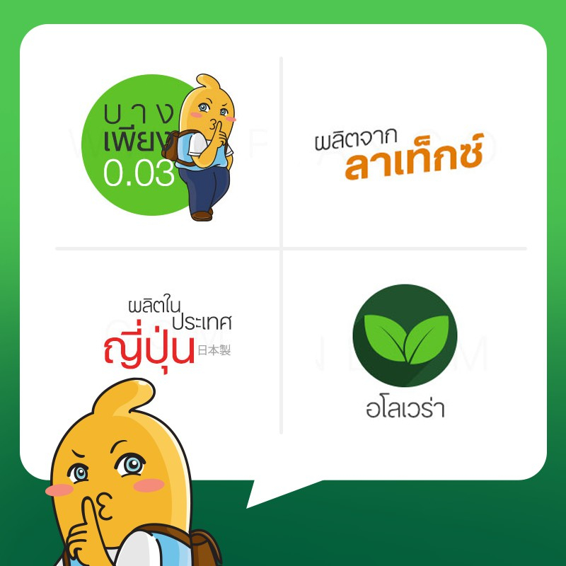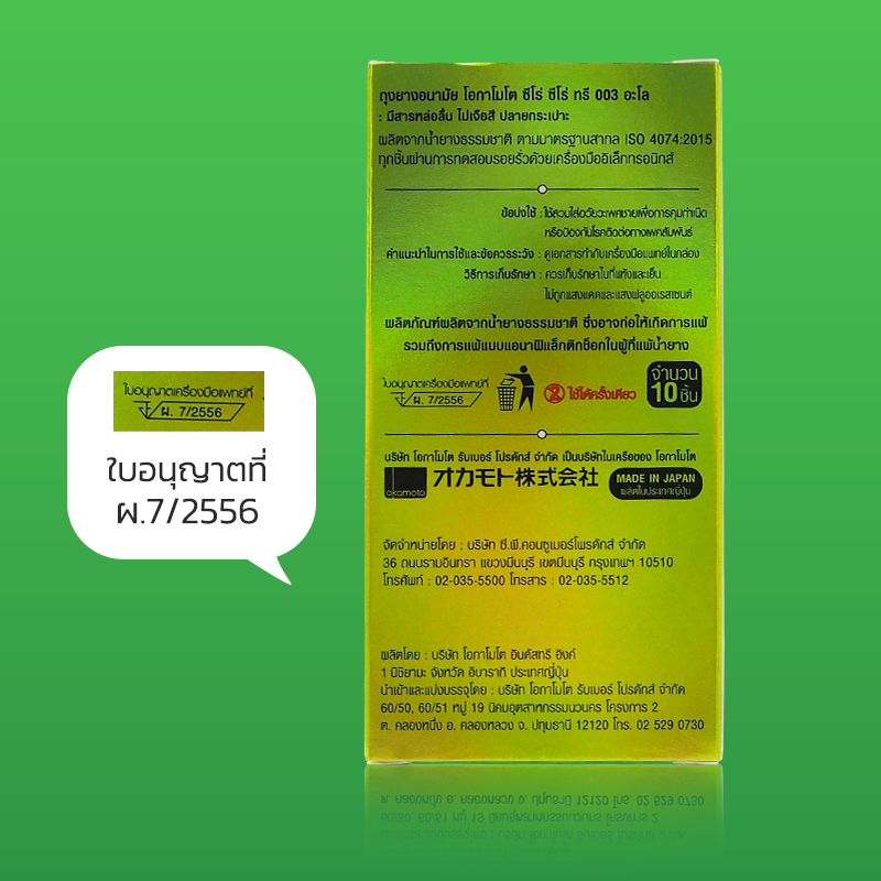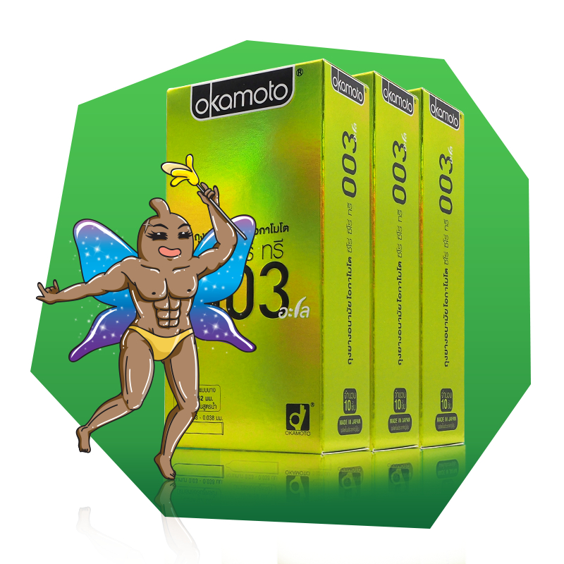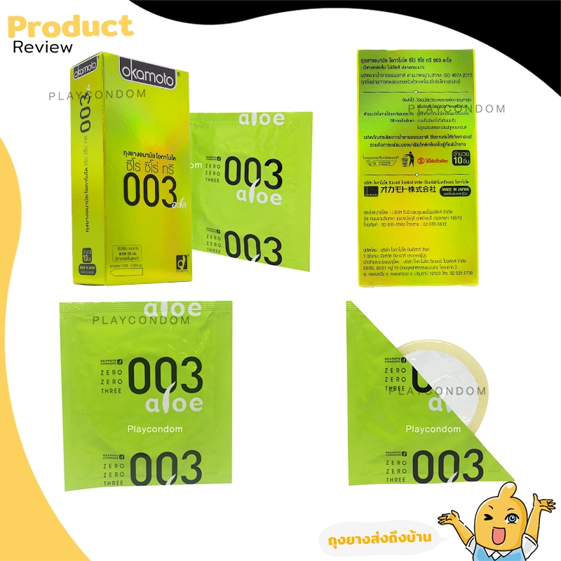 Okamoto 003 Aloe Pack ถุงยางอนามัย บางพิเศษ ผสมว่านหางจระเข้ ผิวเรียบ ขน าด 52 มม. บรรจุ 3 กล่อง (10 ชิ้น)