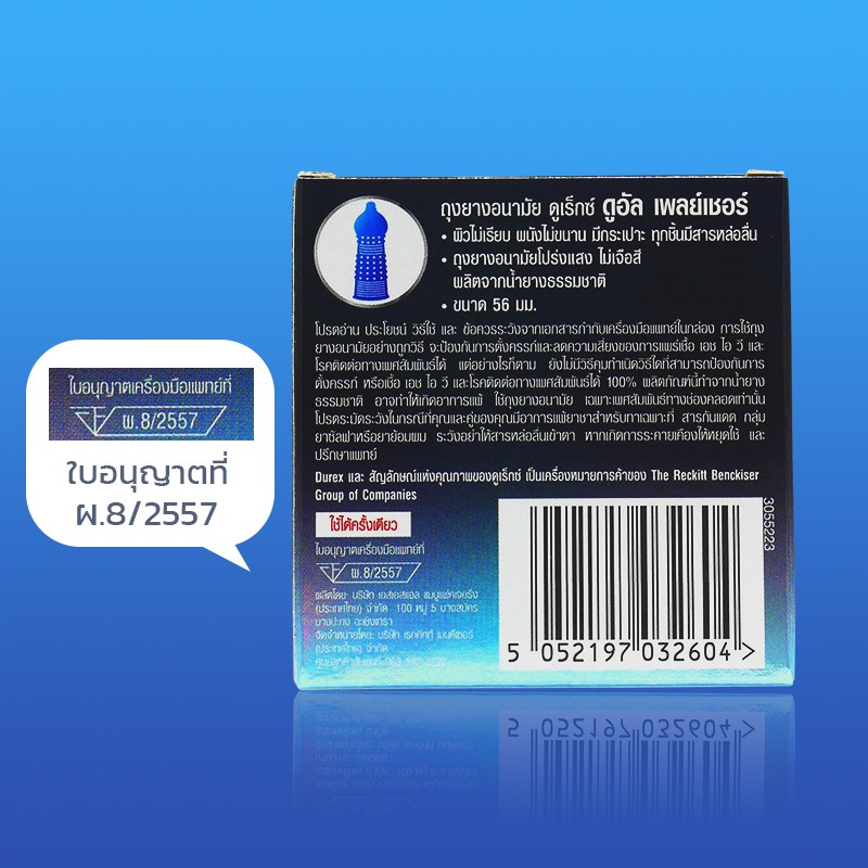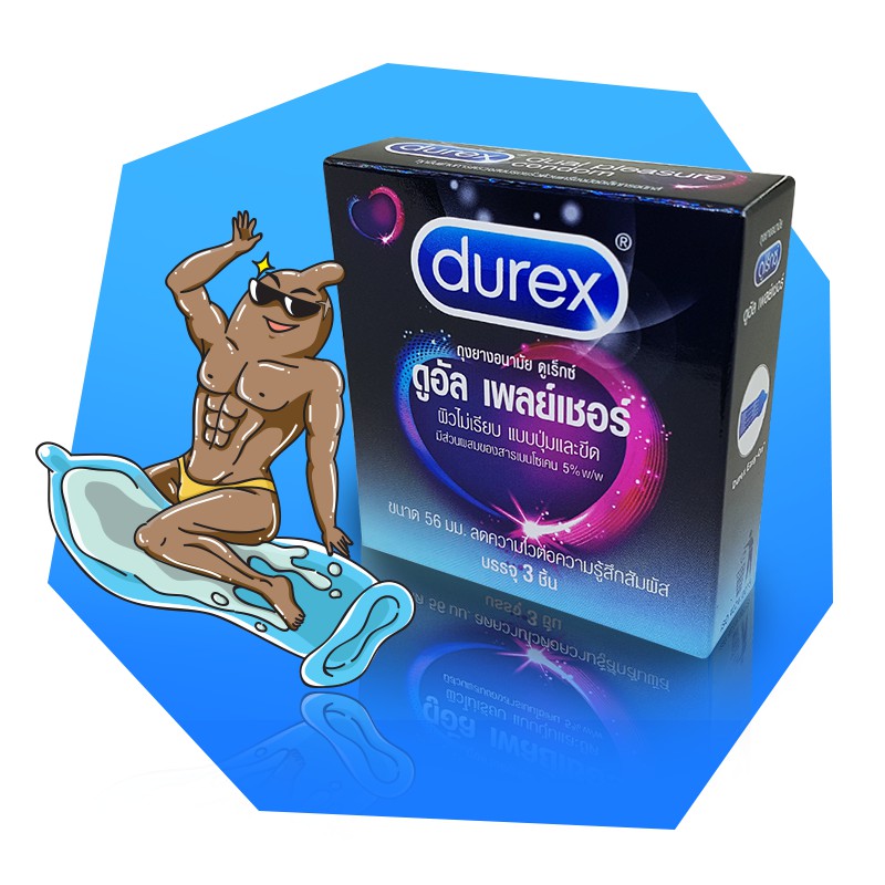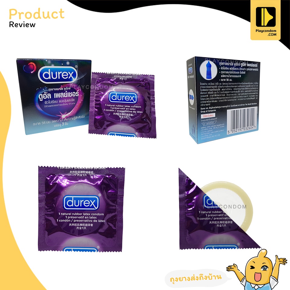 Durex Dual Pleasure ถุงยางอนามัย มีสารชะลอหลั่ง ผิวไม่เรียบมีปุ่มและขีด ใหญ่พิเศษ ขนาด 56 มม. บรรจุ 1 กล่อง (3 ชิ้น)