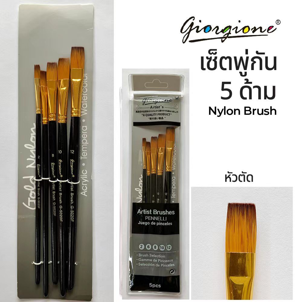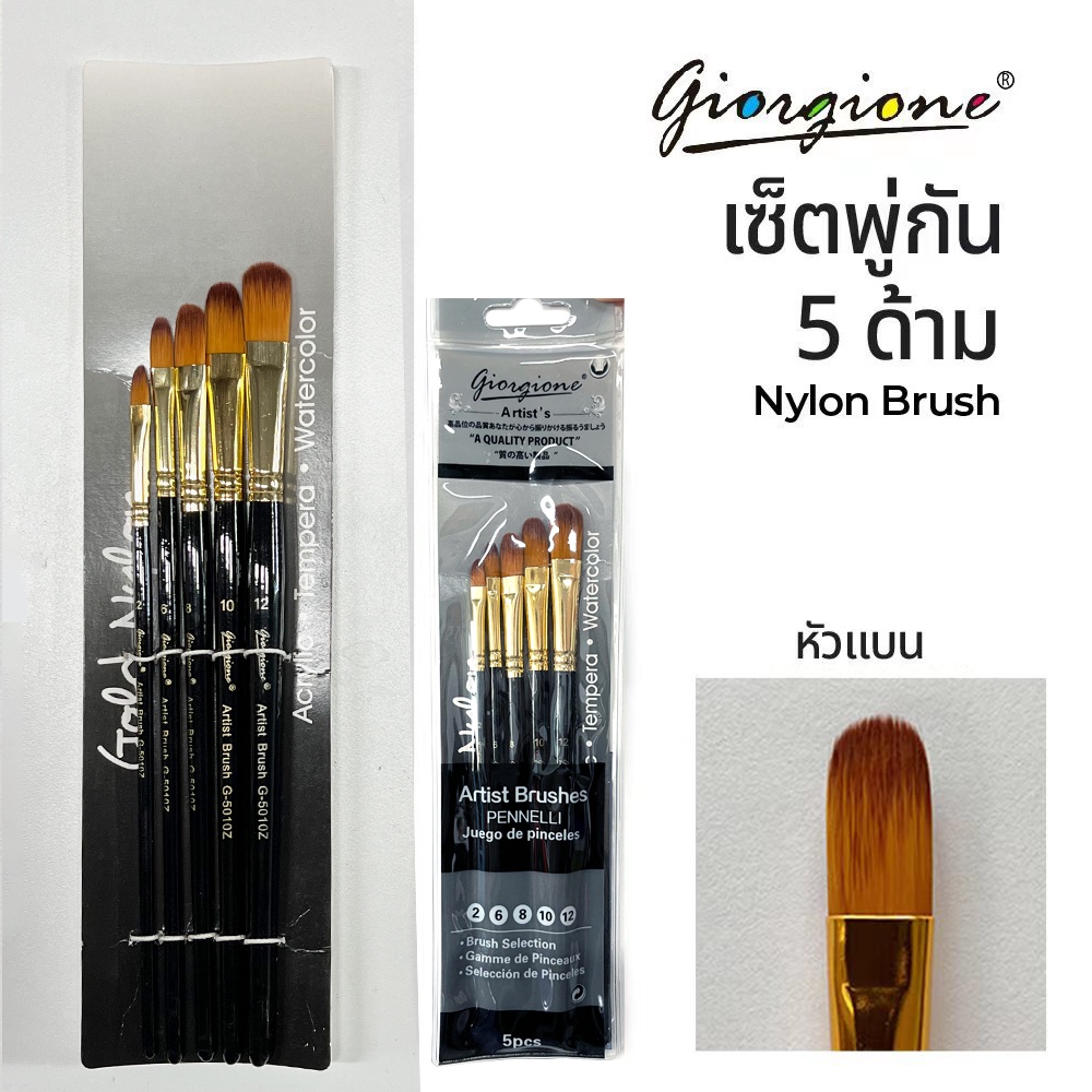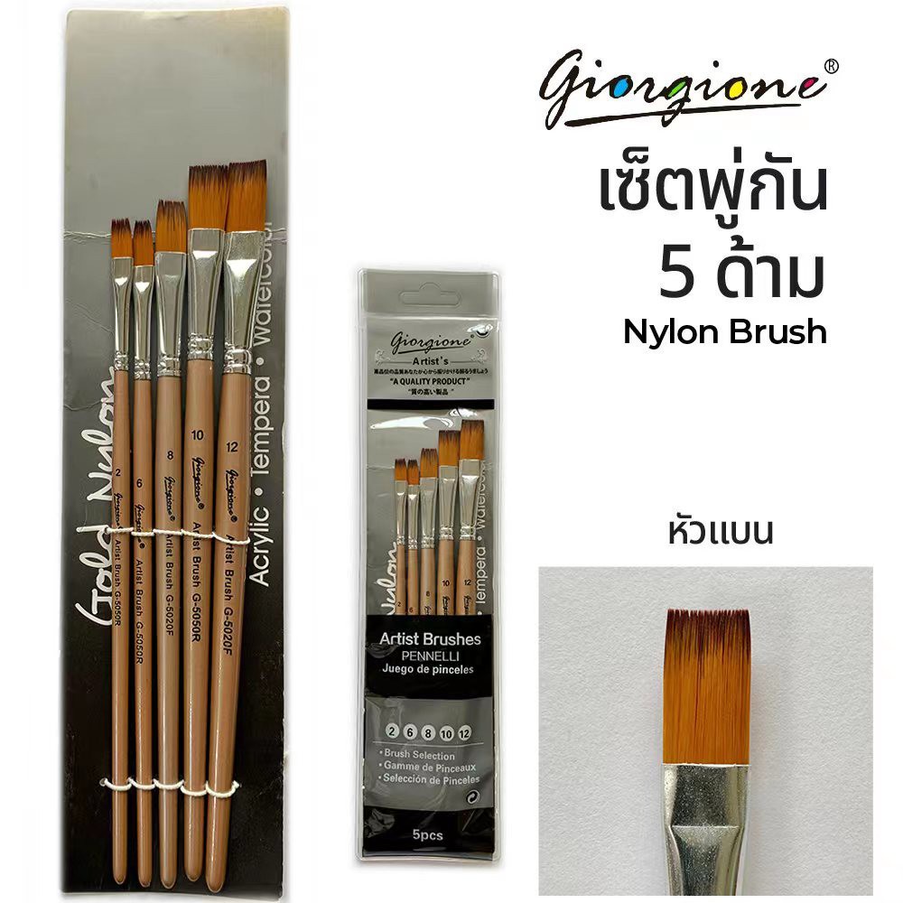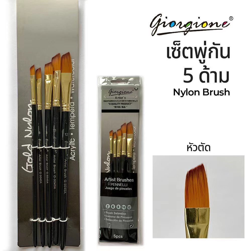 Giorgione (ชุด5ด้าม)พู่กัน พู่กันสีน้ำ พู่กันสีอะคริลิค พู่กันสีน้ำมัน พู่กันระบายสี พู่กันแบน Artist Nylon Brush