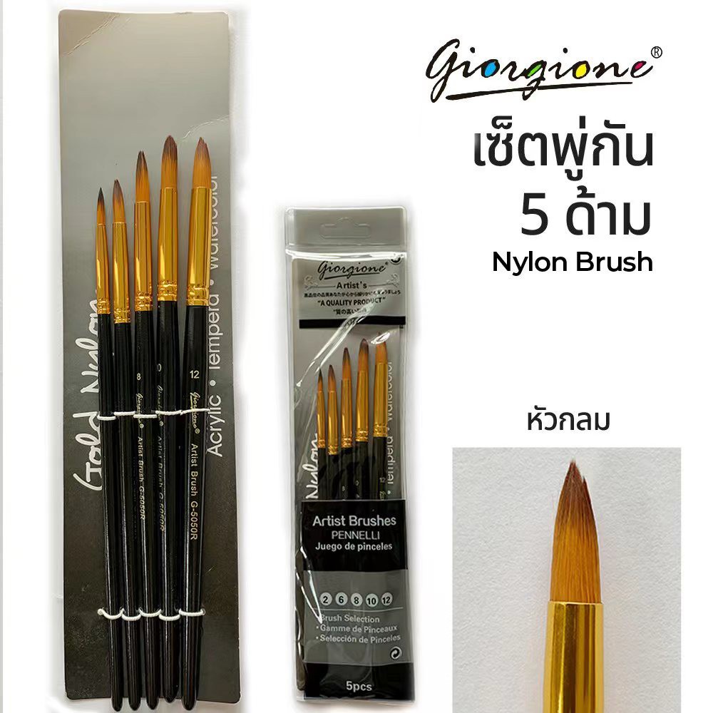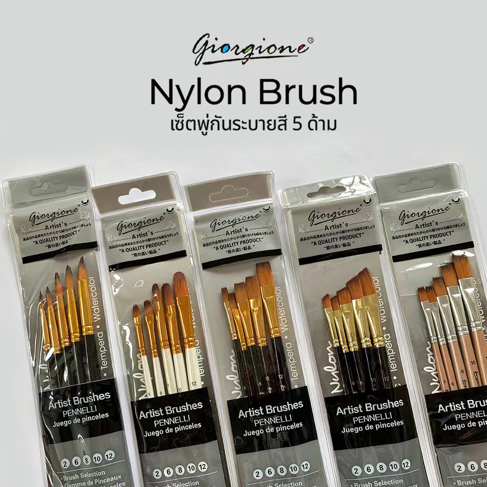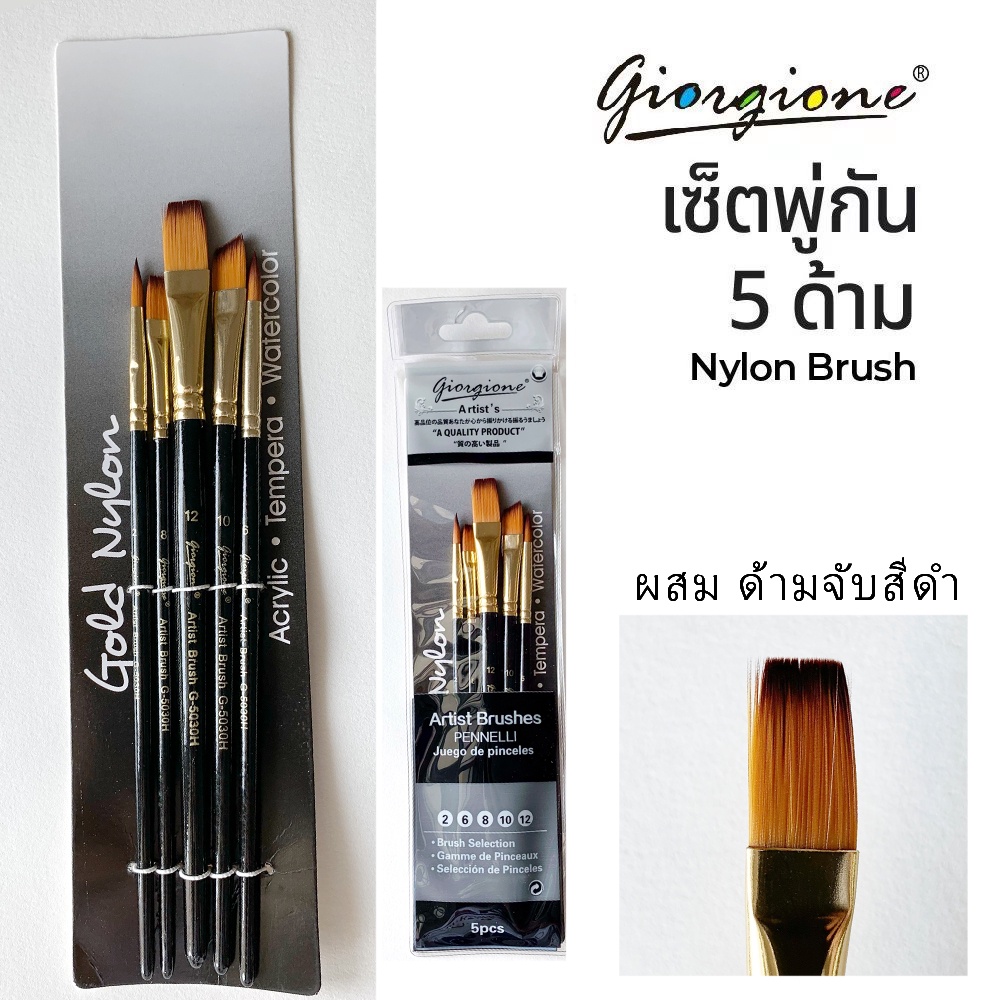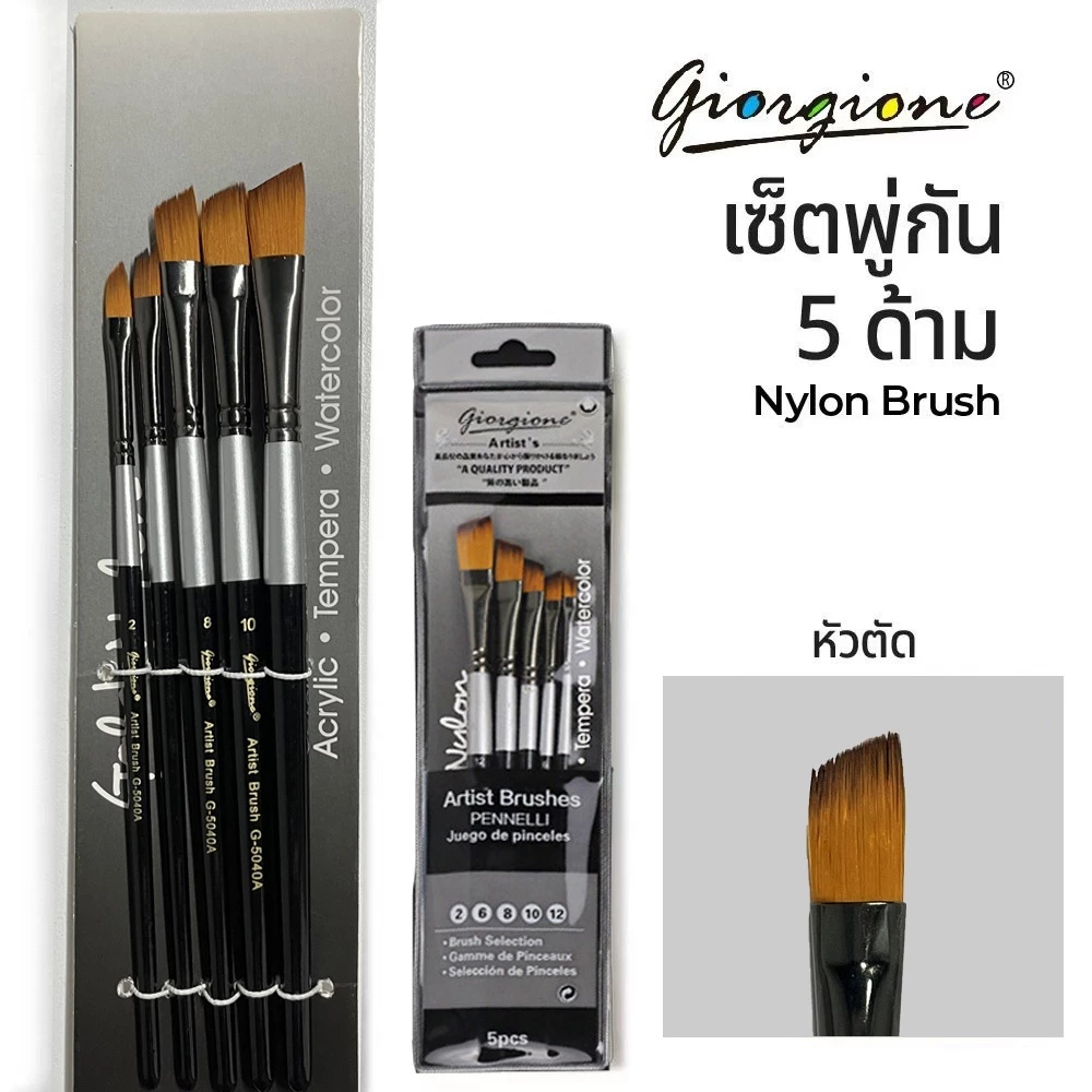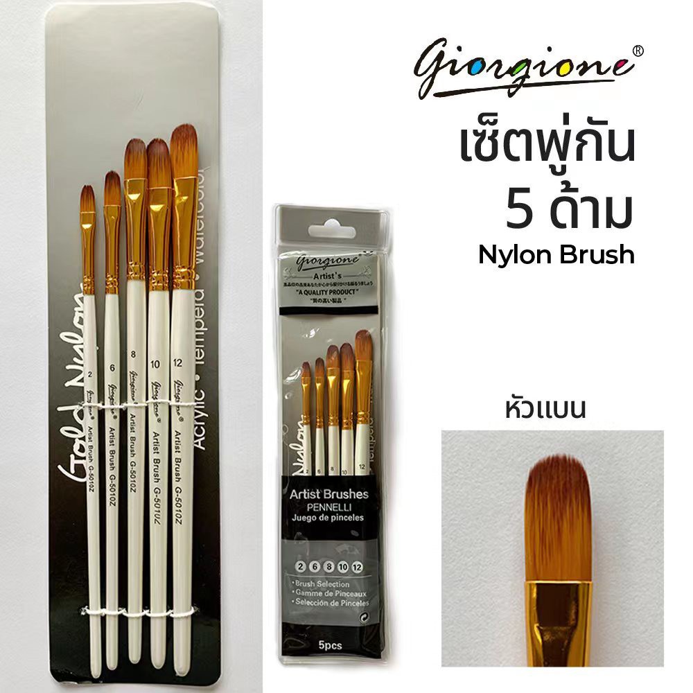 Giorgione (ชุด5ด้าม)พู่กัน พู่กันสีน้ำ พู่กันสีอะคริลิค พู่กันสีน้ำมัน พู่กันระบายสี พู่กันแบน Artist Nylon Brush