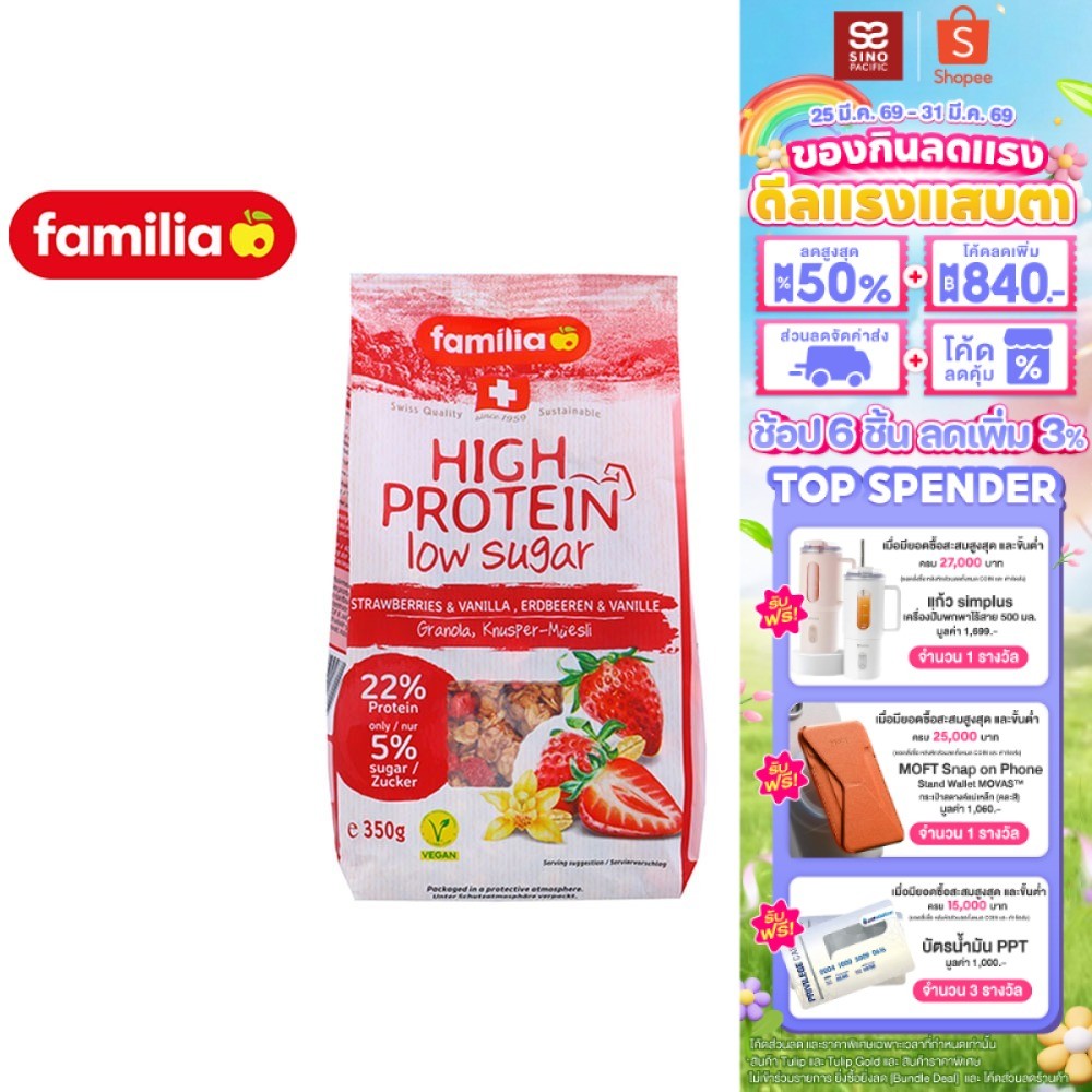 Familia highprotein&lowsugar strawberry แฟมิเลียไฮโปรตีนโลว์ชูการ์สตรอเบอร์รี่ 350 กรัม