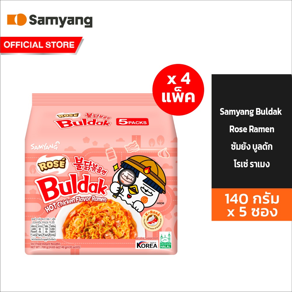 [4 แพ็ค][แพ็ค 5 ซอง] Samyang Buldak Rose Ramen ซัมยัง บูลดัก โรเซ่ ราเมง 700ก. (รวม 20 ซอง)