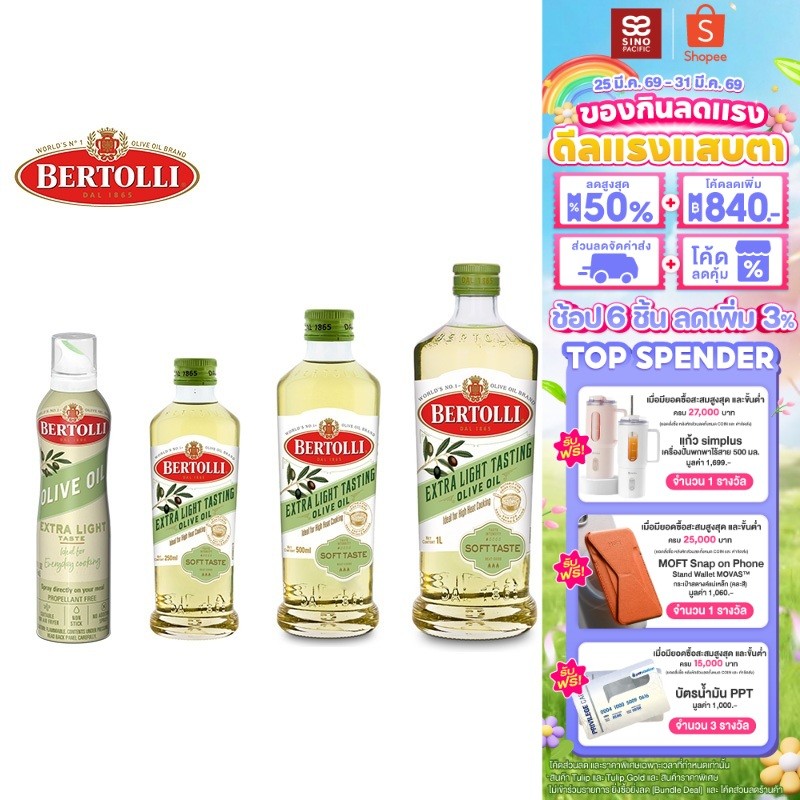 Bertolli Extra Light น้ำมันมะกอก ปรุงอาหาร เลือกได้ 4 ขนาด
