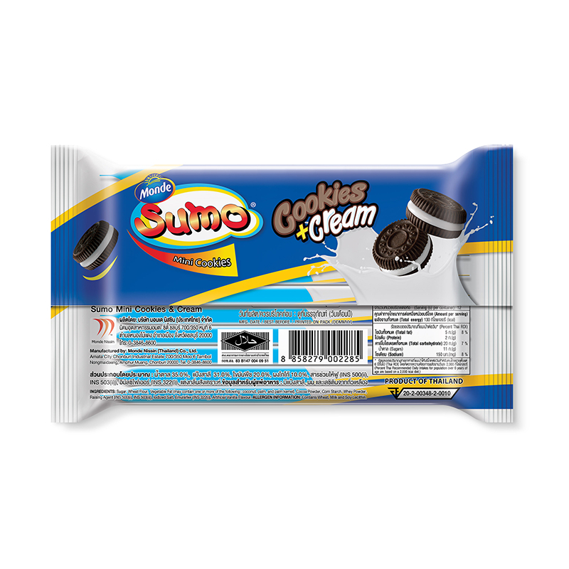 [ยกลัง] Sumo Cookies & Cream คุกกี้ไส้ครีม ตราซูโม่ 28g 12 ชิ้น/ซอง (1 ลัง มี 12 ซอง)