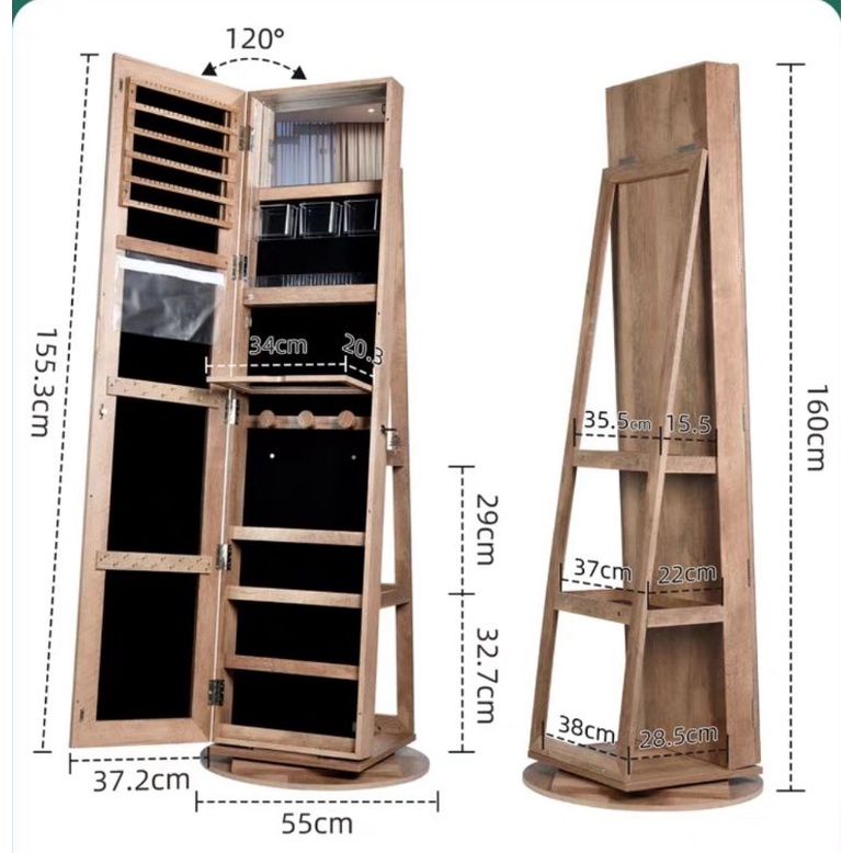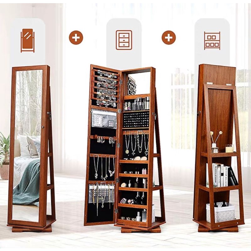 ตู้กระจกเก็บเครื่องประดับ accessory หมุนได้ 360 มีกุญแจล็อค DR970