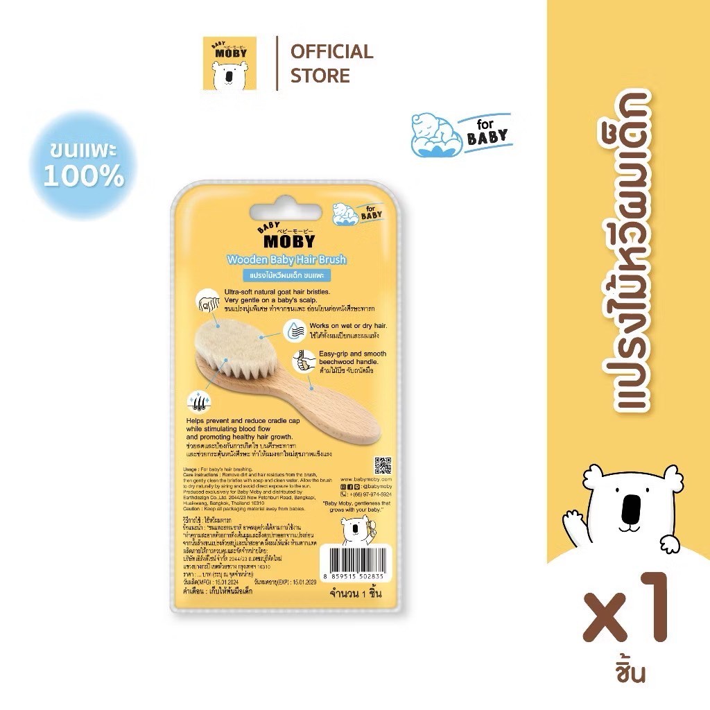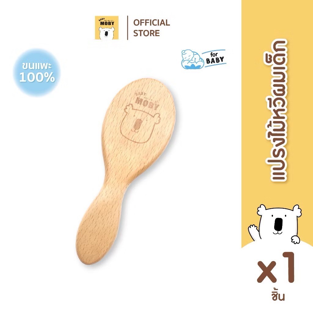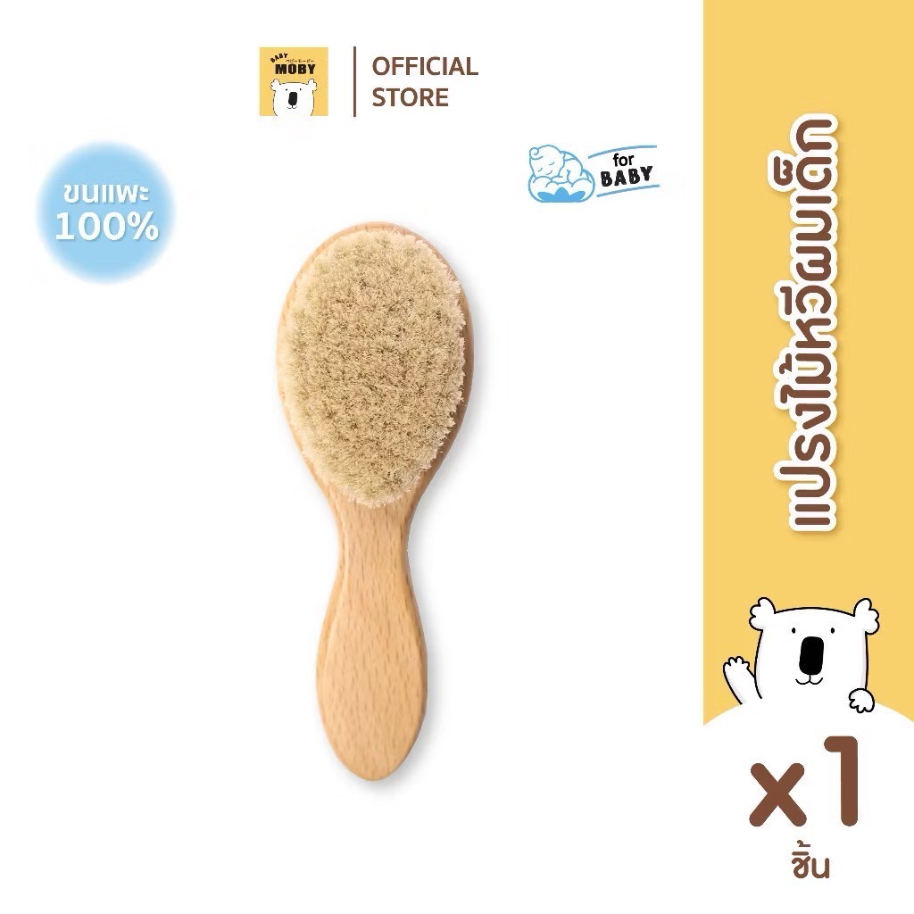 ส่งด่วน BABY MOBY แปรงหวีไม้ สำหรับทารก ทำจากขนแพะ100% ขนแปรงนุ่มเป็นพิเศษ อ่อนโยนต่อหนังศีรษะทารก