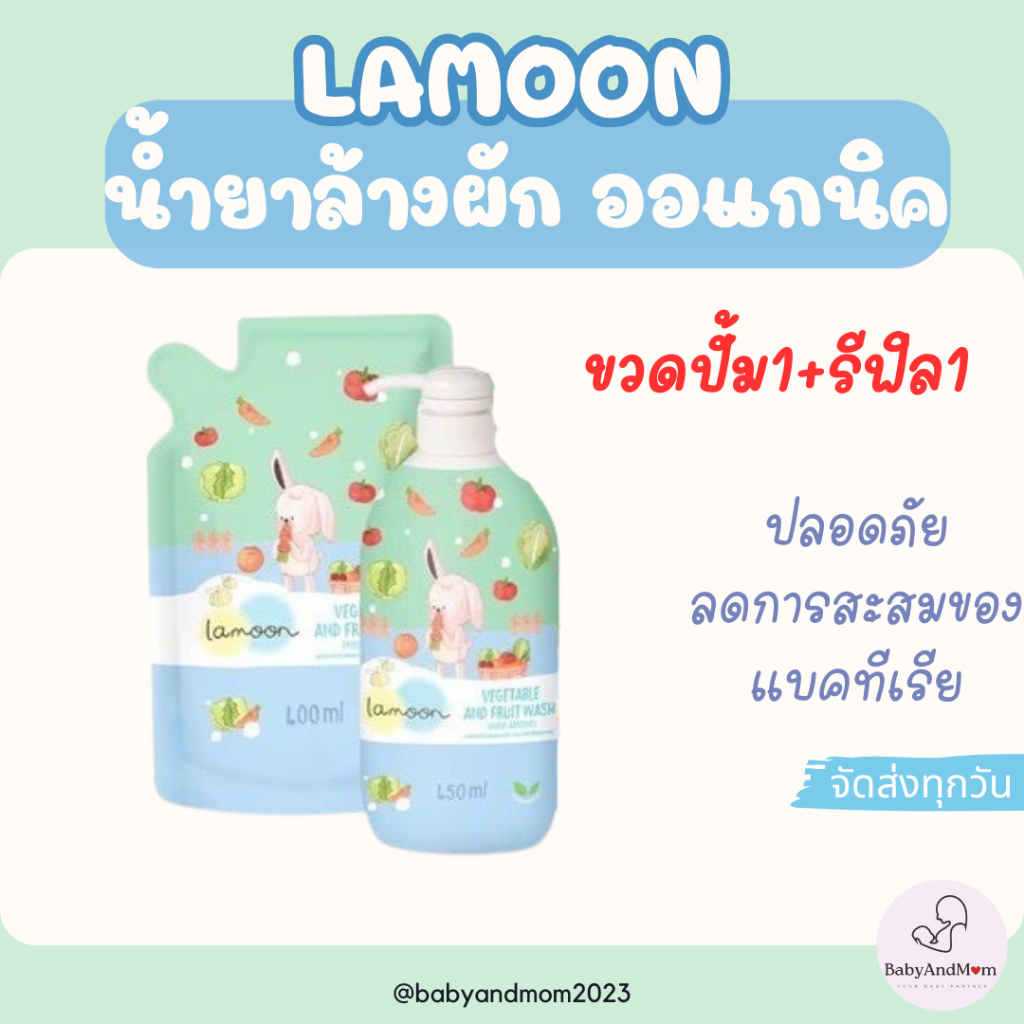 ส่งไว ล็อตใหม่! ละมุน Lamoon น้ำยาล้างผักและผลไม้ ออร์แกนิค ละมุนเบบี้ ขวดปั๊ม 450ml ถุงรีฟิล 400ml