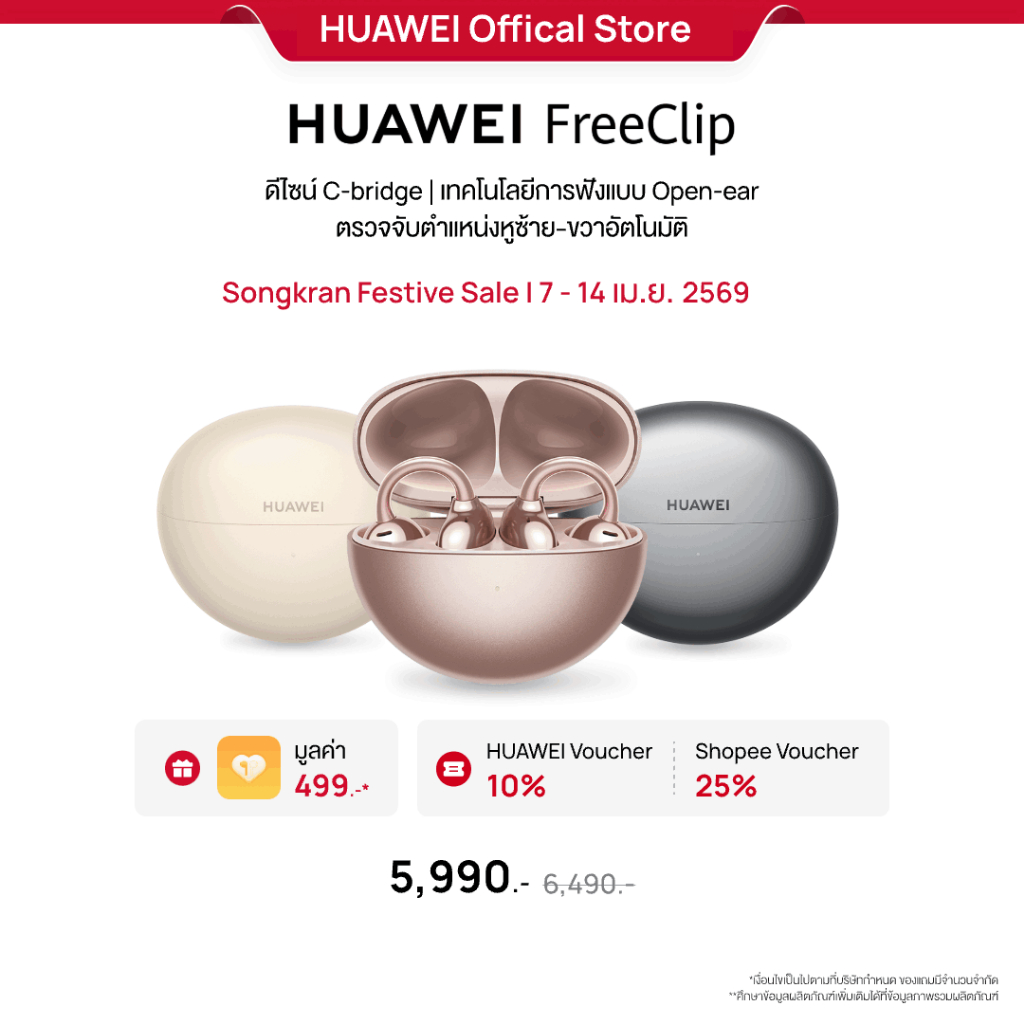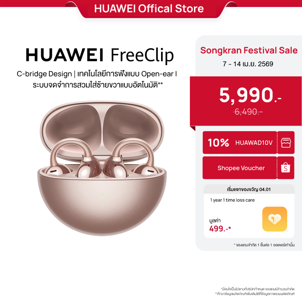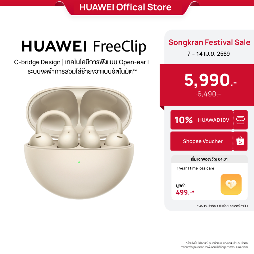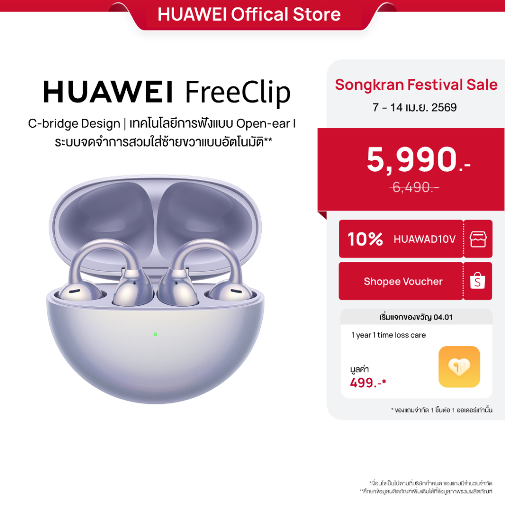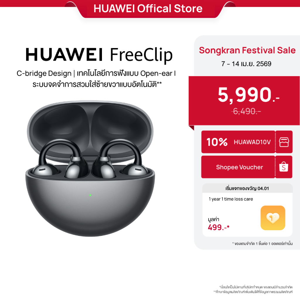 [4.7 - 4.14 | โค้ดลด 10%] HUAWEI FreeClip | หูฟัง | การออกแบบ C-bridge | เทคโนโลยีการฟังแบบ Open