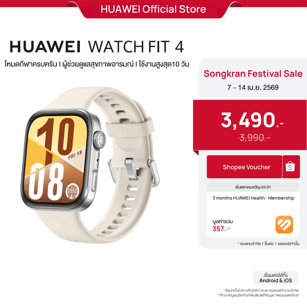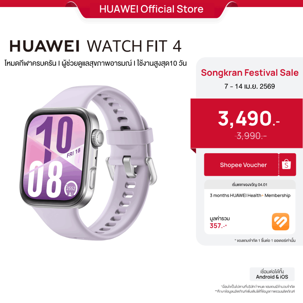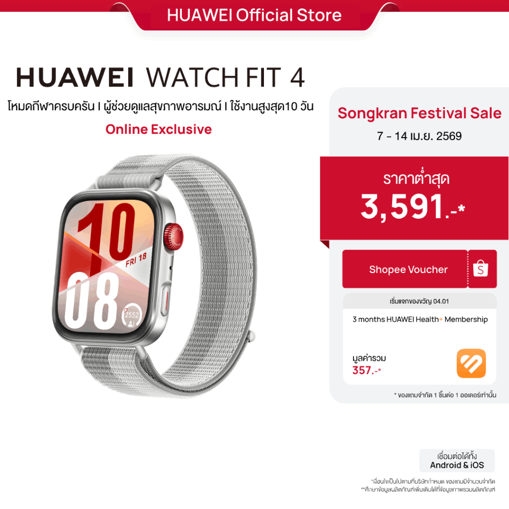 [4.7 - 4.14 | โค้ดลด 10%] HUAWEI WATCH FIT 4 Series | สมาร์ทวอช | การจัดการด้านสุขภาพขั