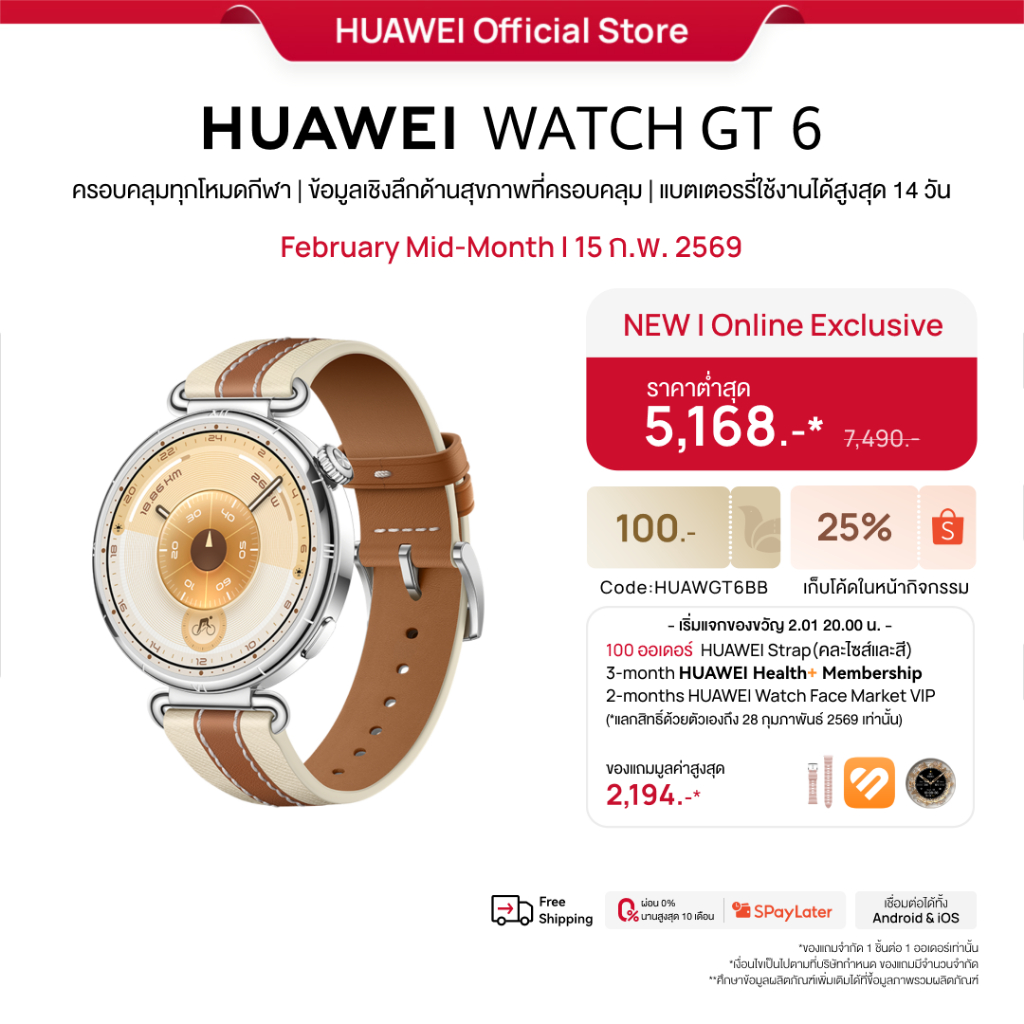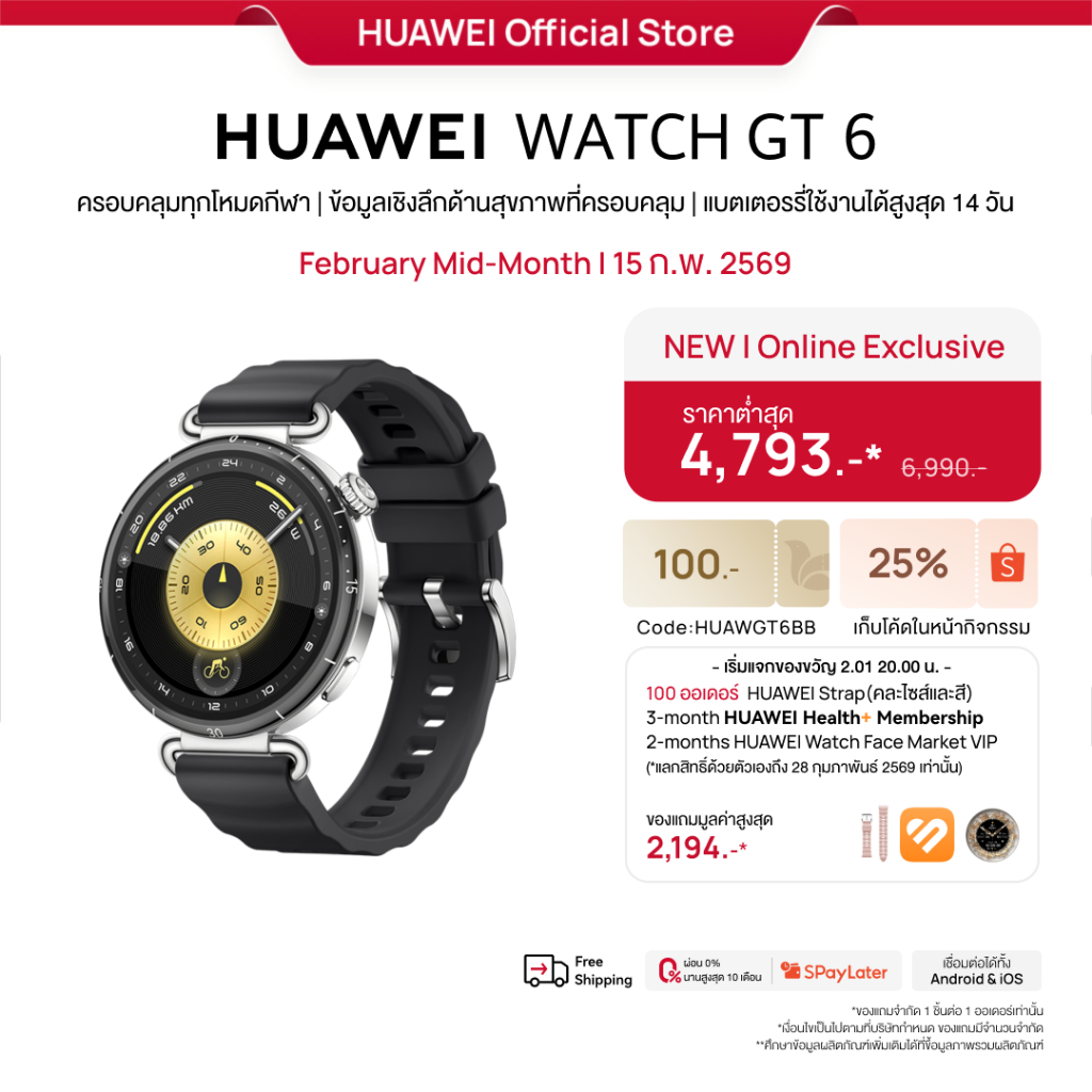 [2.15 | สีใหม่ | ราคาต่ำสุด 4,793.-* | โค้ดลด 25%] HUAWEI WATCH GT 6 Series | อุปกรณ์สวมใส่ | โหมดกีฬากลางแจ้งระดับโปร