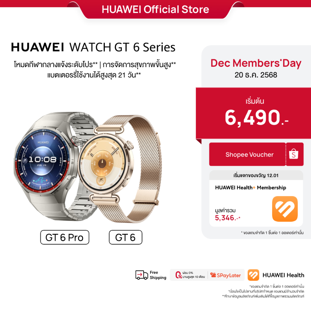 [12.20 | โค้ดลด 10%] HUAWEI WATCH GT 6 Series | อุปกรณ์สวมใส่ | โหมดกีฬากลางแจ้งระดับโปร