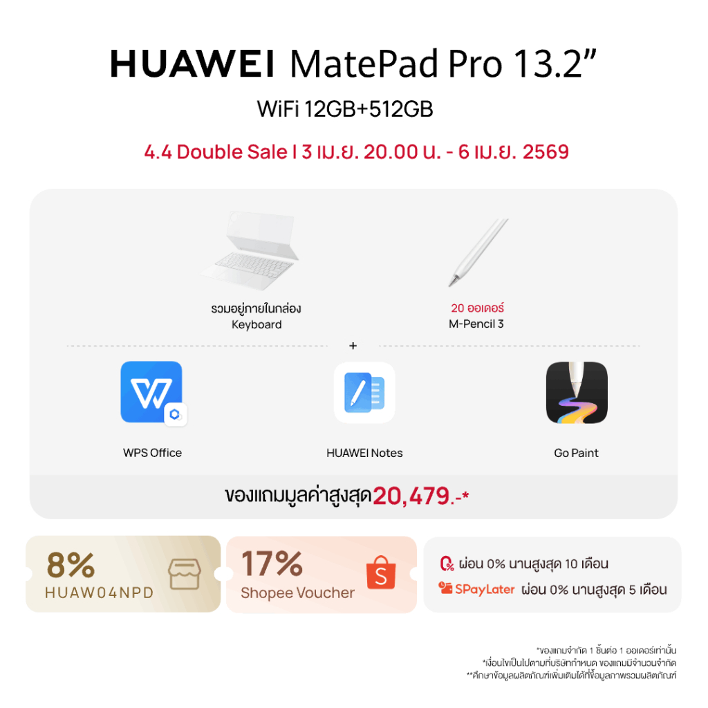 [4.3 20.00 - 4.6 | โค้ดลดเพิ่ม 17%] HUAWEI MatePad Pro 13.2-inch 2025 | แท็บเล็ต | PC-level WPS Office