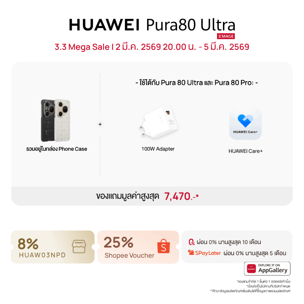 [3.2 20.00 - 3.5 | โค้ดลด 10%] HUAWEI Pura 80 Ultra | มือถือ | กล้องเทเลโฟโตแบบคู่ l กล้อง Ultra Lighting HDR ขนาด 1 นิ้