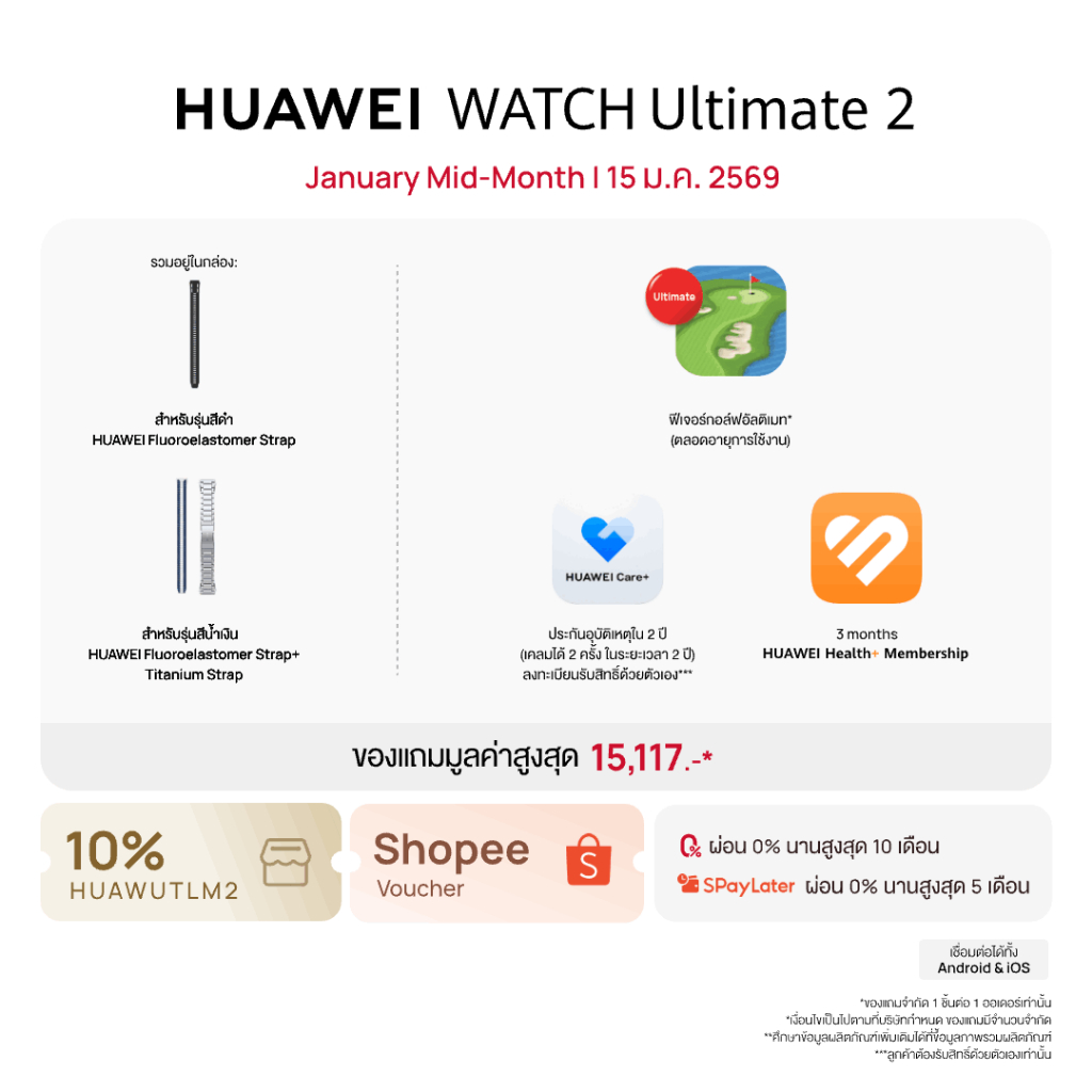 [1.15 | โค้ดลด 17%] HUAWEI WATCH Ultimate 2 | อุปกรณ์สวมใส่ | ทนทานเหนือระดับด้วยโลหะเหลว