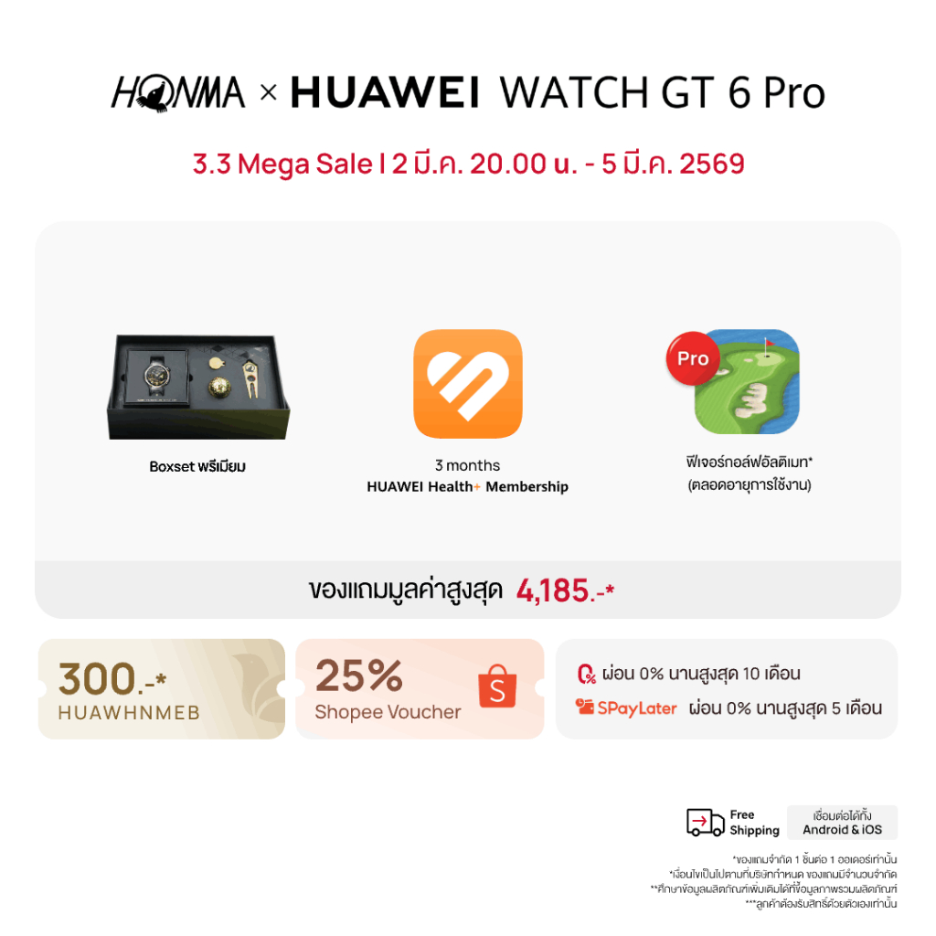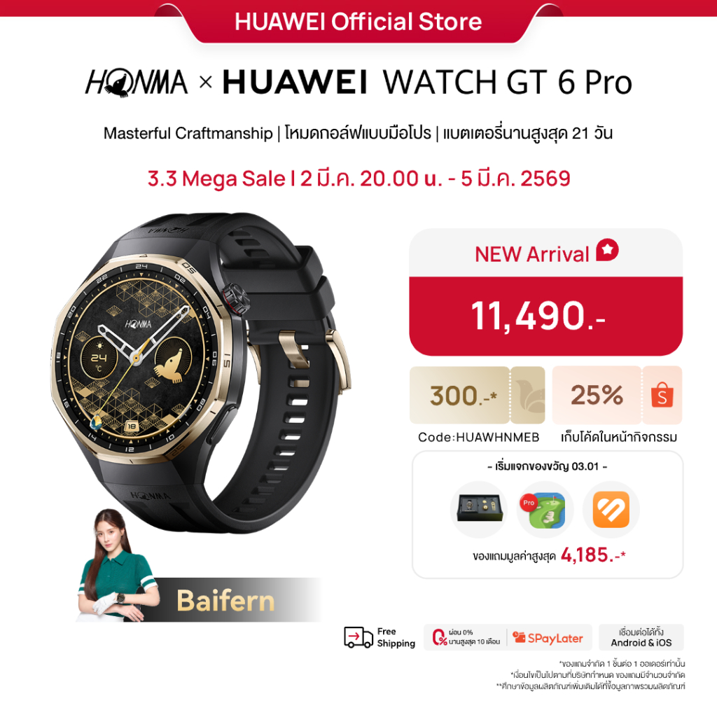 [3.2 20.00 - 3.5 | โค้ดลด 25%] HONMA × HUAWEI WATCH GT 6 Pro | อุปกรณ์สวมใส่ | Masterful Craftmanship