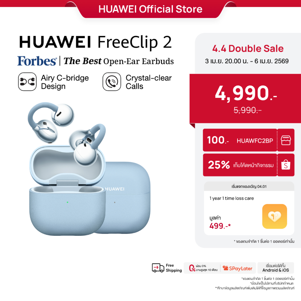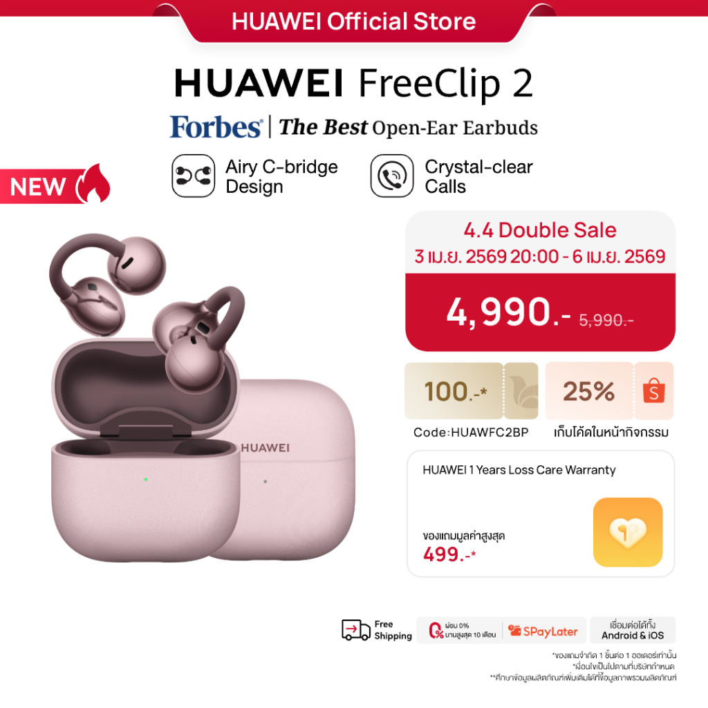 [4.3 20.00 - 4.6 | โค้ดลด 25%] HUAWEI FreeClip 2 | หูฟัง | Airy C-bridge Design | Crystal-clear Calls