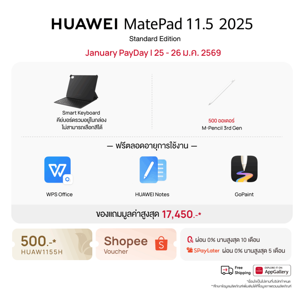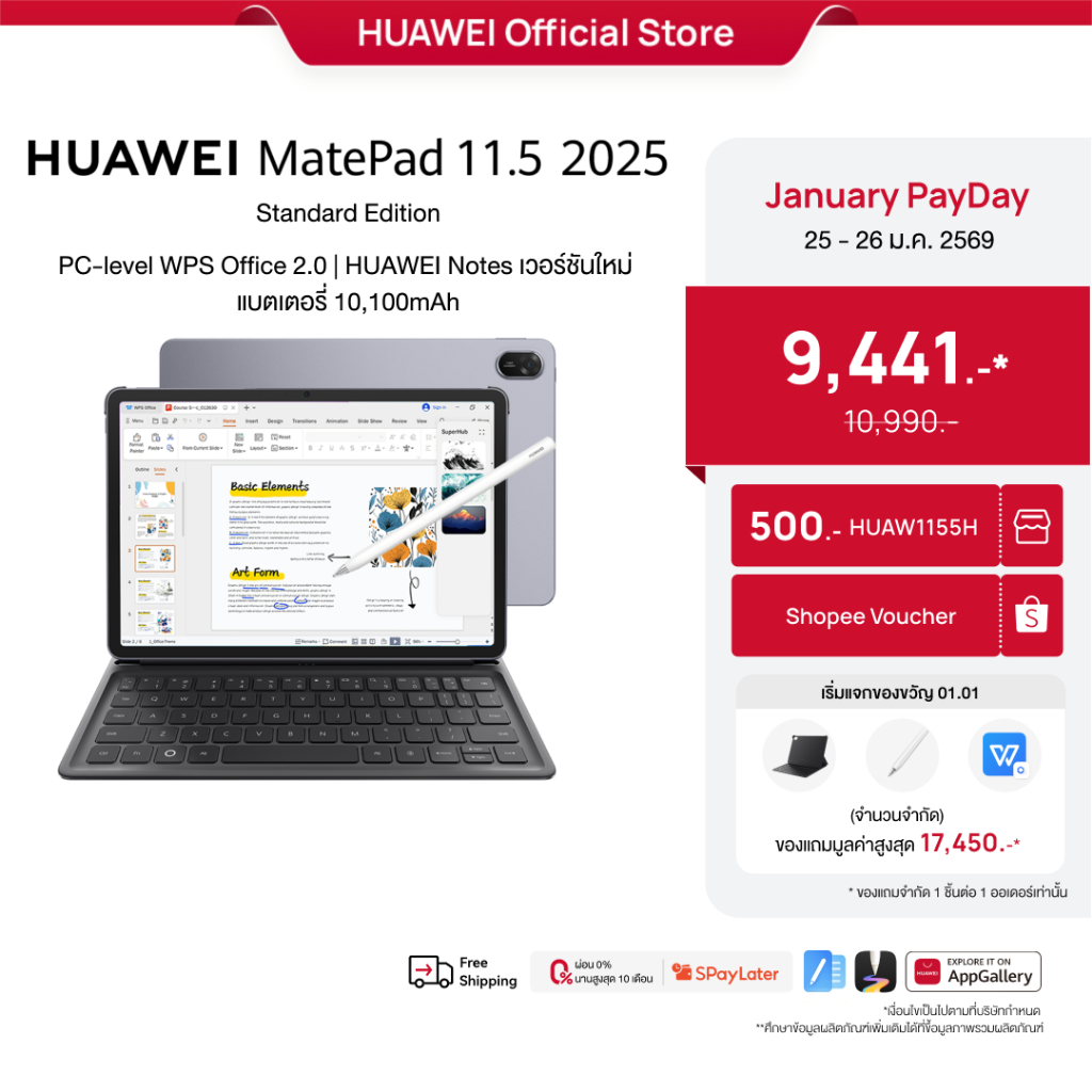 [1.25 - 1.26 | โค้ดลดเพิ่ม 10% | NEW] HUAWEI MatePad 11.5 2025 Standard Edition | แท็บเล็ต | PC-level WPS Office 2.0