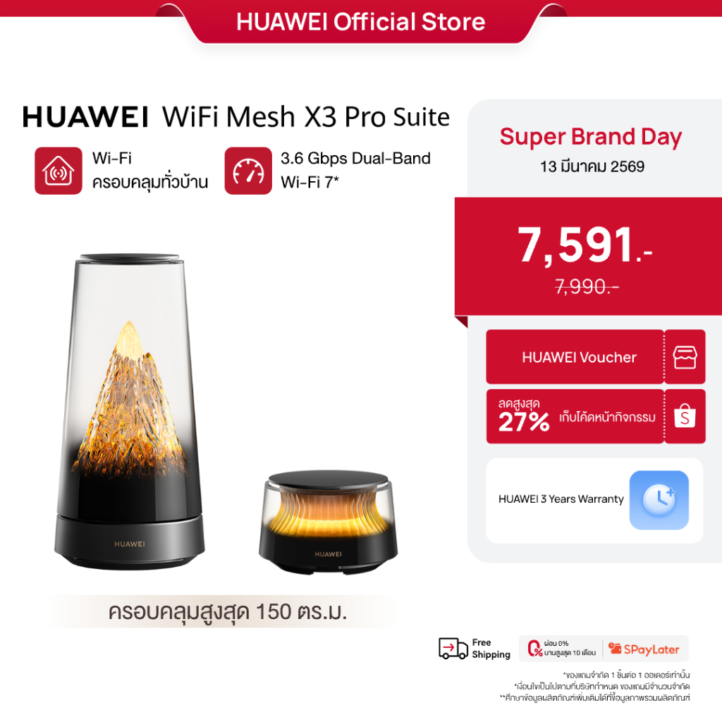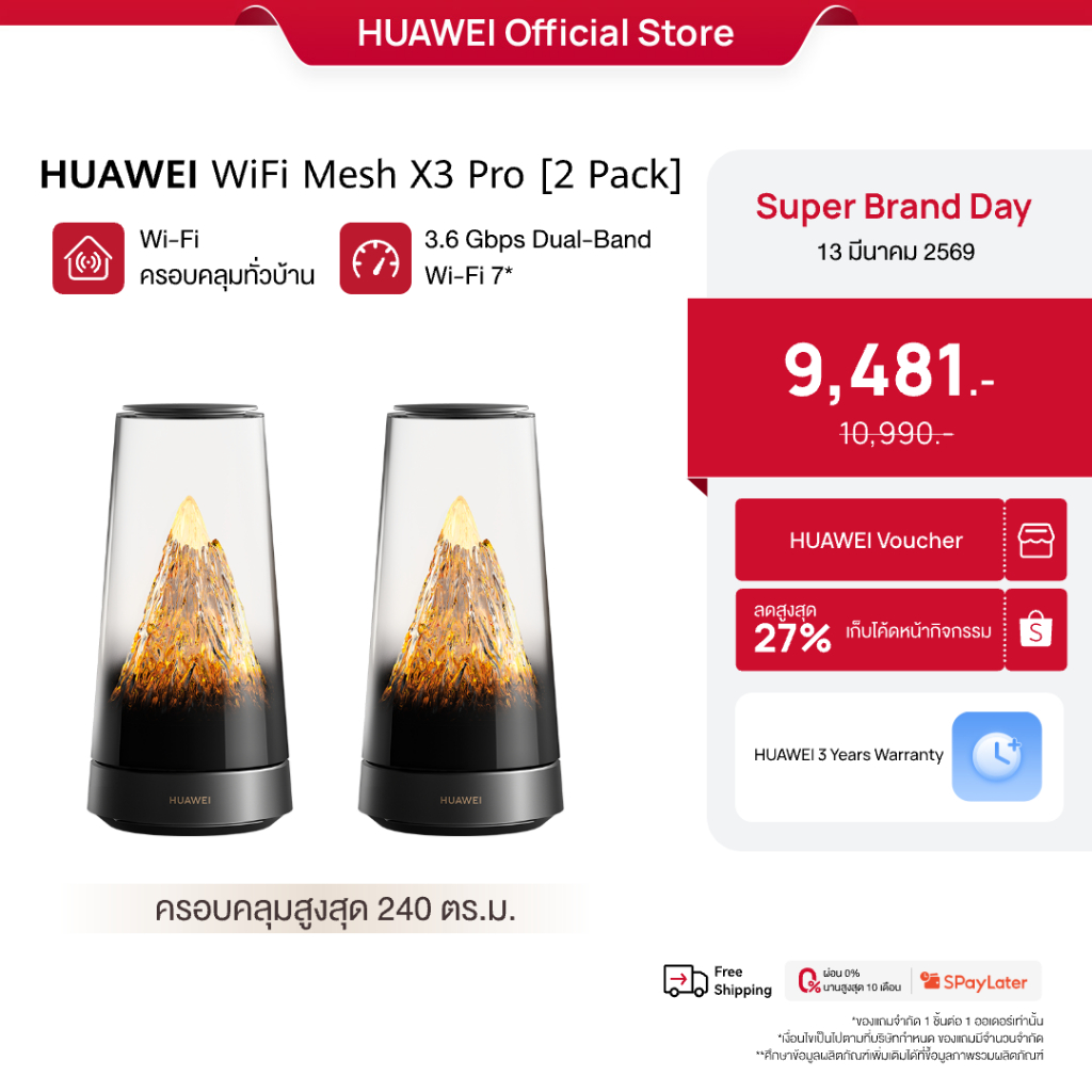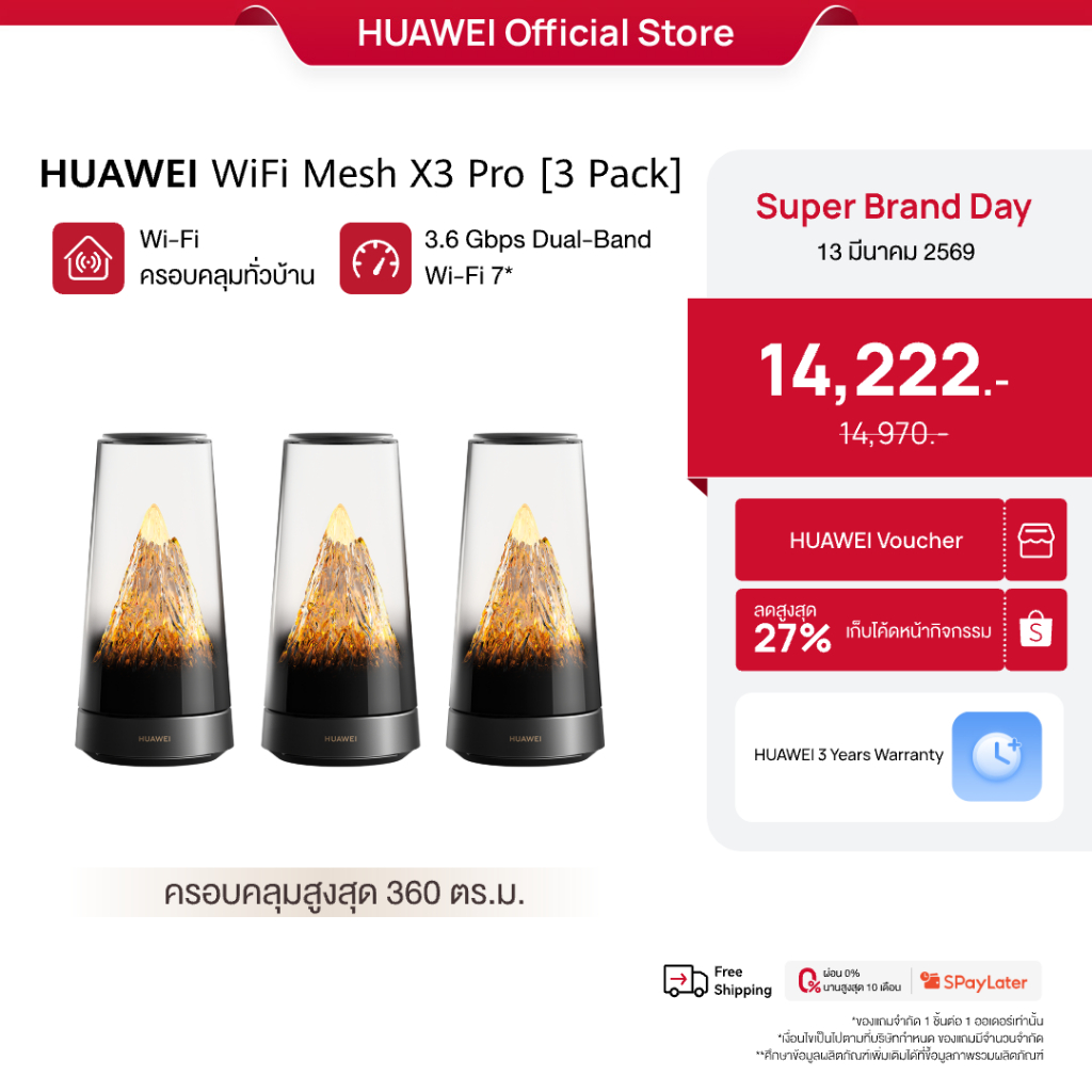 [SBD 3.13 | โค้ดลด 27%] HUAWEI WiFi Mesh X3 Pro Series | เราเตอร์ | Wi-Fi ครอบคลุมทั่วบ้าน