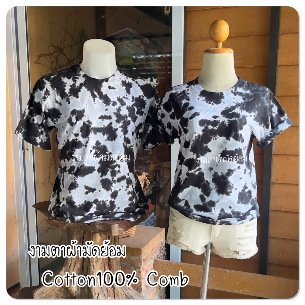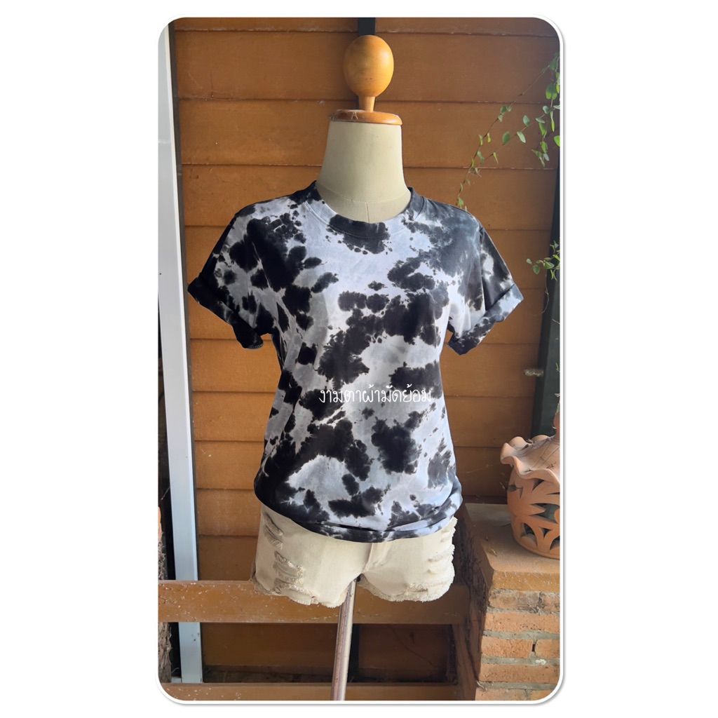 เสื้อยืดมัดย้อมเย็น ลายหินแตก ดำ/เทา🖤🩶 cotton100% มีครบทุกไซส์