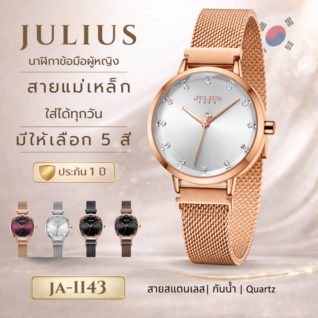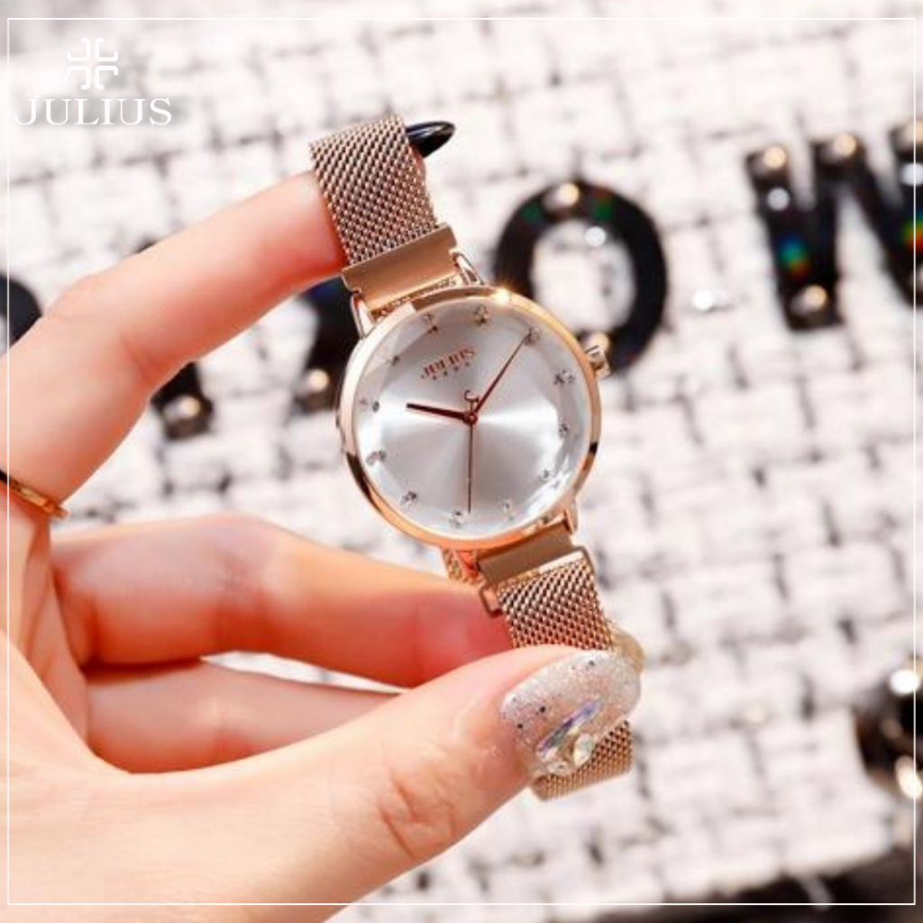 JULIUS JA-1143 นาฬิกาข้อมือผู้หญิง สายสแตนเลส กันน้ำ Quartz นาฬิกาแฟชั่นผู้หญิง พร้อมกล่อง
