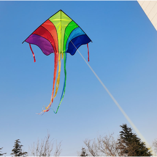 (พร้อมส่ง)ว่าว สามเหลี่ยม7สี ขนาด 1.5 เมตร บินลอยดีเยี่ยม พร้อมเชือกแถม 50 เมตร สินค้าพร้อมส่ง จากไทย