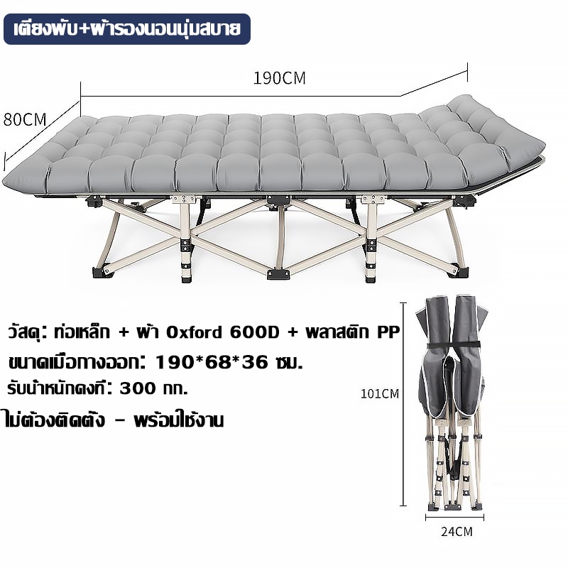 เตียงพับ เตียงพับกลางแจ้ง เตียงพับนอนได้ ไม่ต้องประกอบ พับง่าย แบบพกพา ความจุแบริ่ง 300KG