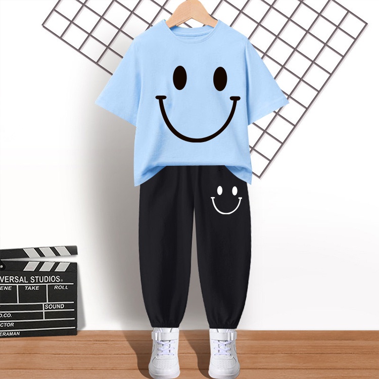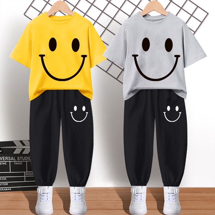 #H256+K270ชุดเซ็ทเด็กเสื้อยืด+กางเกงขายาวผ้านุ่มใสสบายฯ ลายสวยแฟชั่งได้ทั้งชายและหญิง**ปลีก-ส่ง