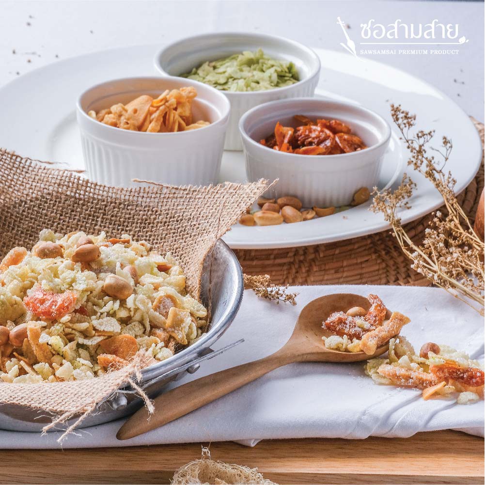 ข้าวเม่าหมี่ทรงเครื่อง🌈ซอสามสาย อร่อยมาก ต้องยกนิ้ว👍👍👍
