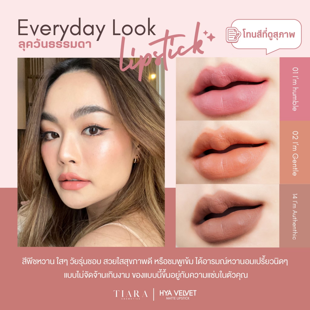 Tiara HYA Velvet Matte Lipstick เทียร่า ลิปสติกผสมไฮยาลูรอน บำรุงปาก กลบปากคล้ำ ติดทนนาน