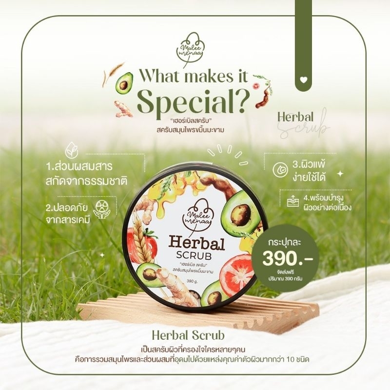 (ซื้อในไลฟ์ลดสูงสุด150฿) Herbal scrub maleemena ฮอร์เบิลสครับ มาลีมีนา สมุนไพร มะขาม 10ชนิด รับตรงจากบริษัทของแท้100%