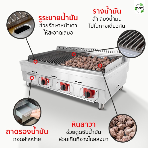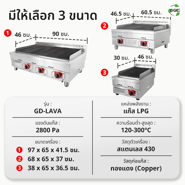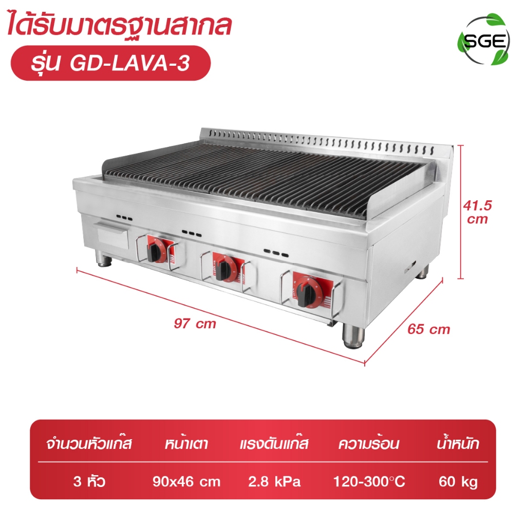 SGE เตาย่าง เตาย่างหินลาวา ระบบแก๊ส รุ่นGD-LAVA มี3 ขนาดให้เลือก รับประกัน 1 ปีเต็ม ของแท้จาก SGE!!!